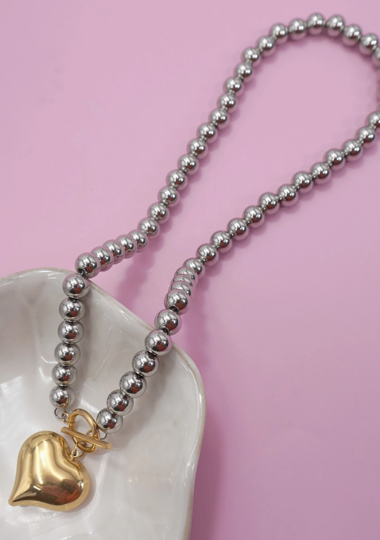 - Two-tone real gold dipped heart pendant on a silver ball chain