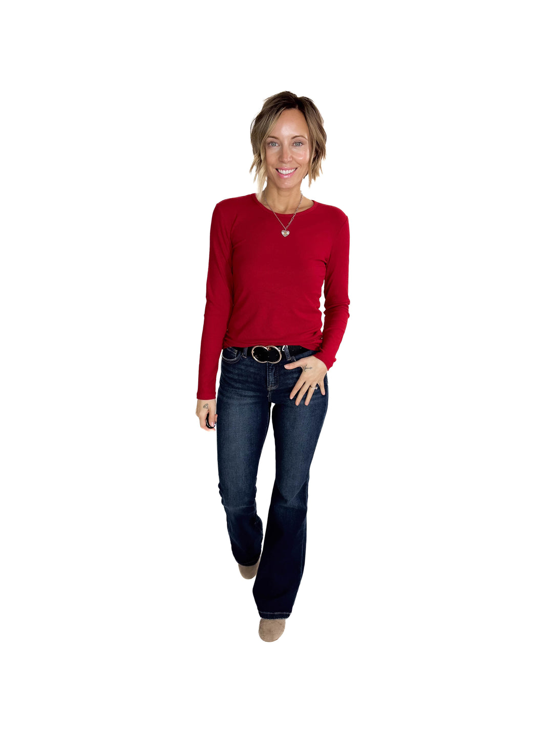 Indie Ribbed Long Sleeve- CRIMSON