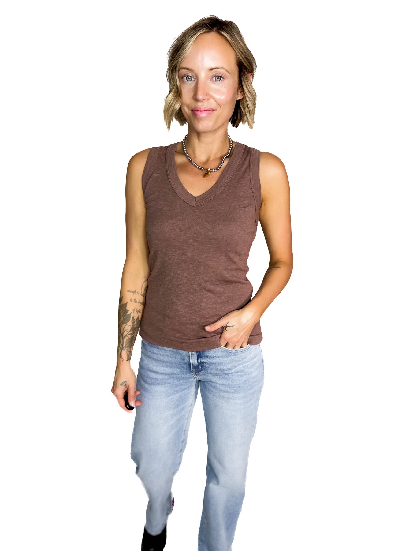Cooper Cotton V-Neck Tank- MILK CHOCOLATE