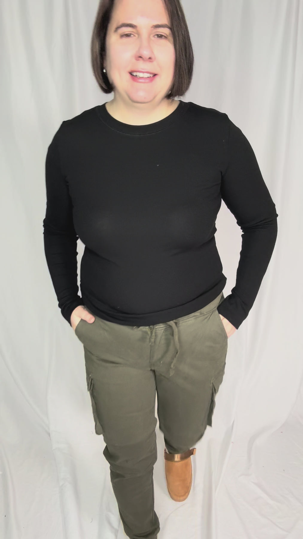 - Lightweight ribbed fabric with a smooth, flattering fit