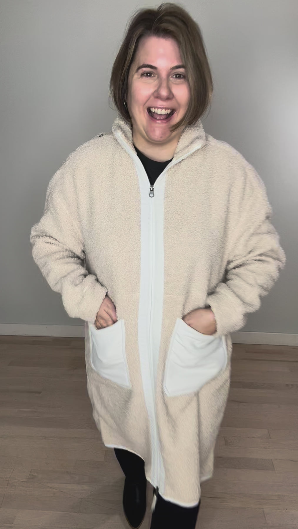 • Wrapped in texture, zipped in comfort — bouclé never looked so good