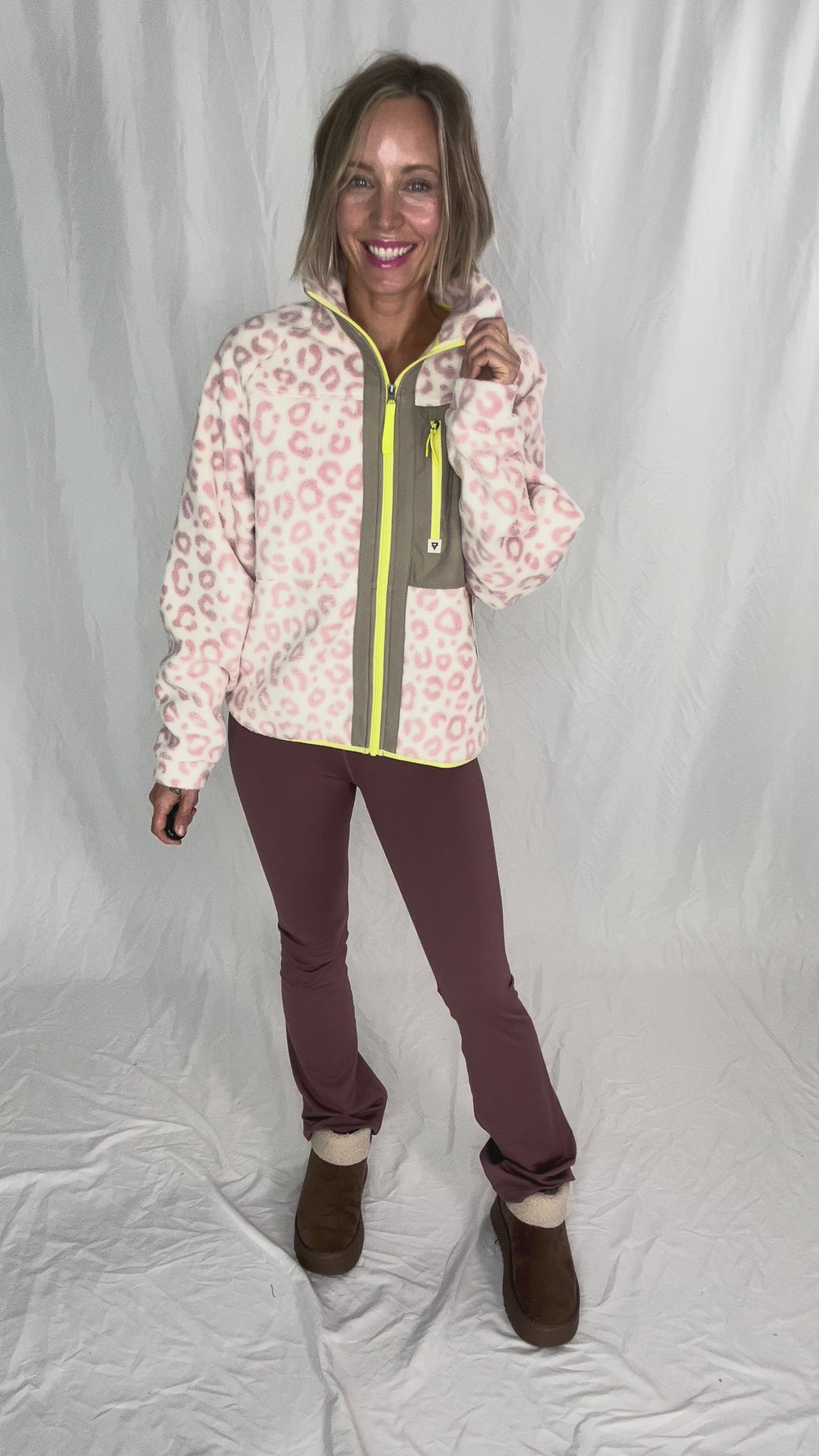 Dawn Full Zip Fleece Jacket- ROSE LEOPARD