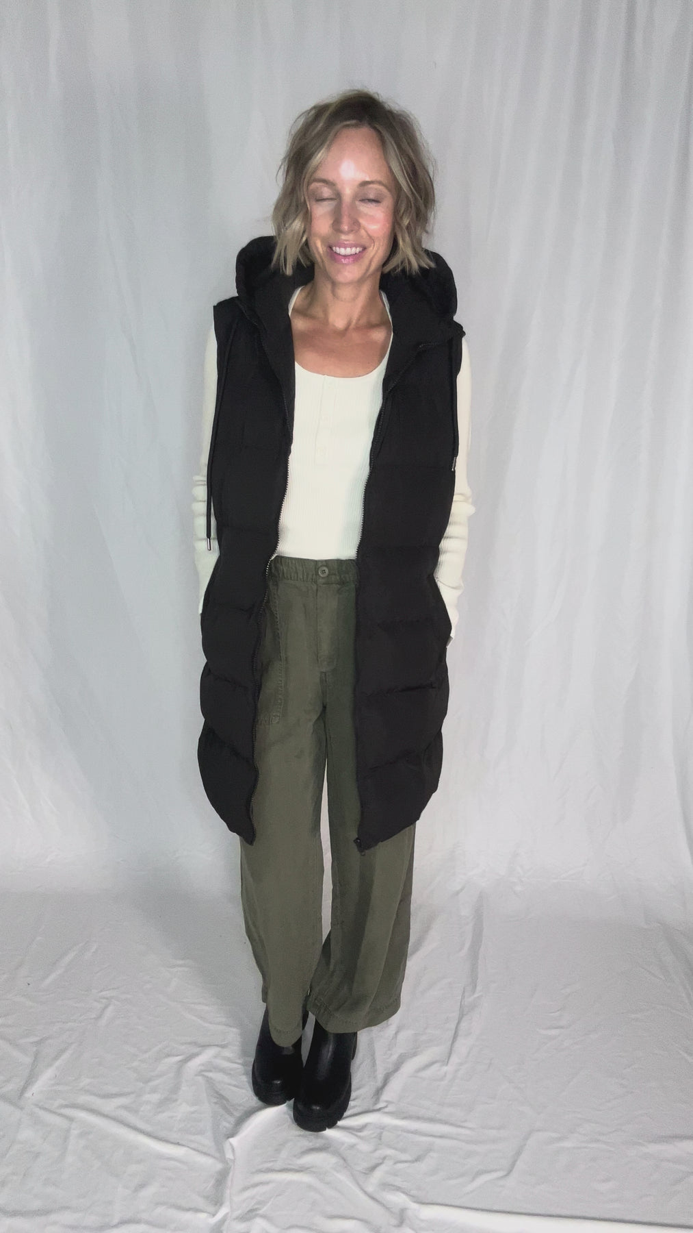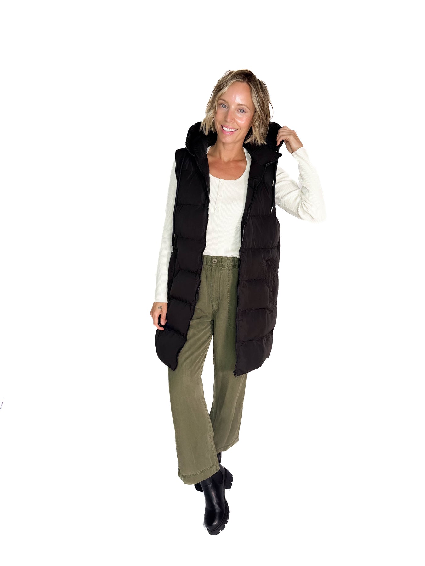 Longline, zipped, and ready for layering — this puffer vest is your new cold-weather MVP