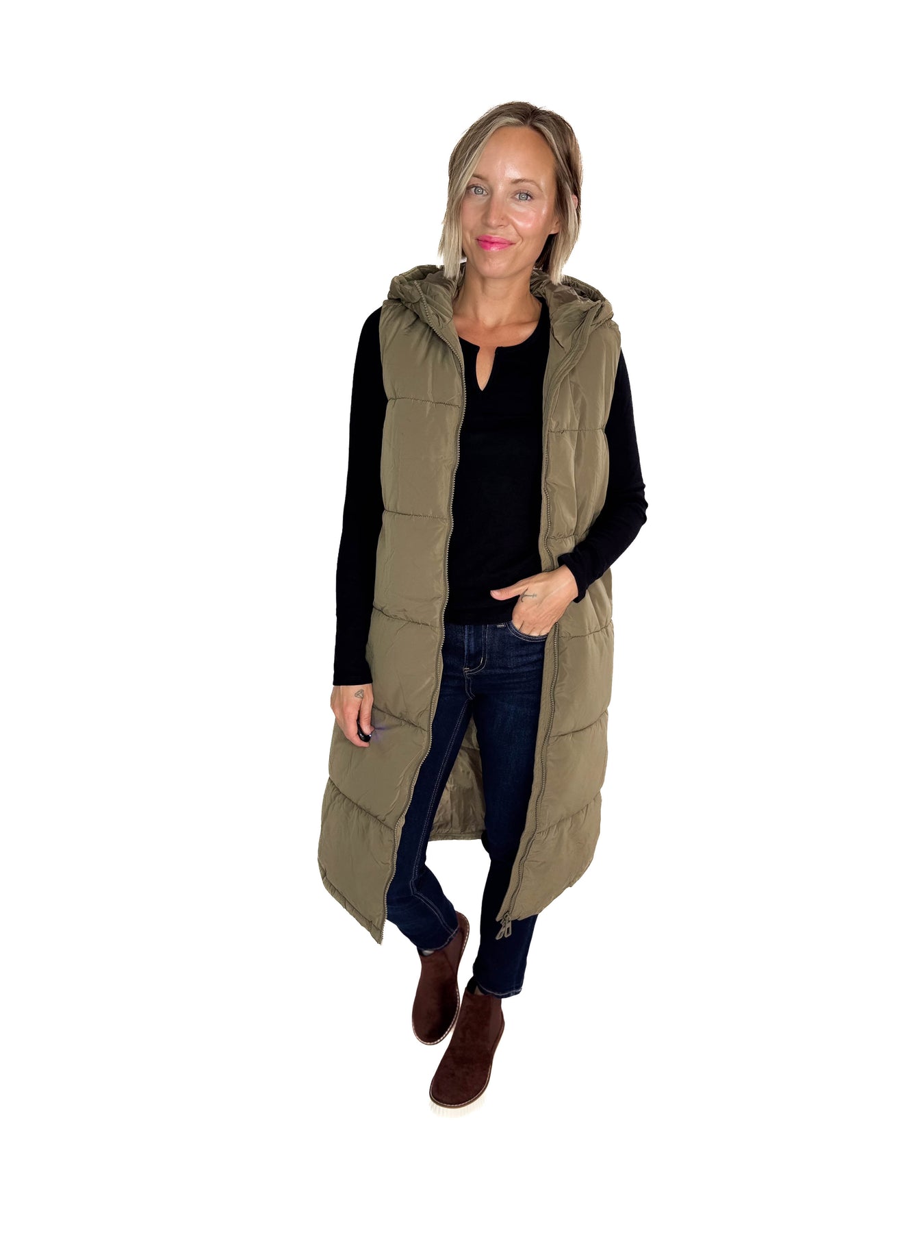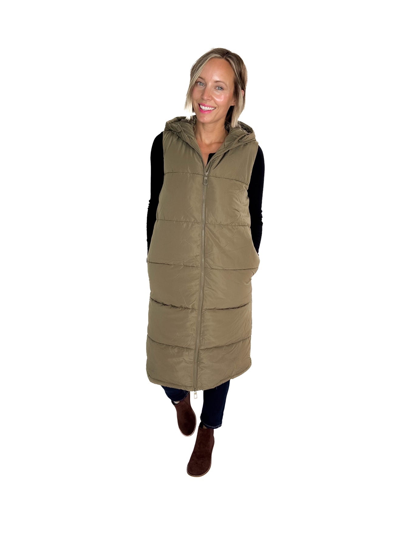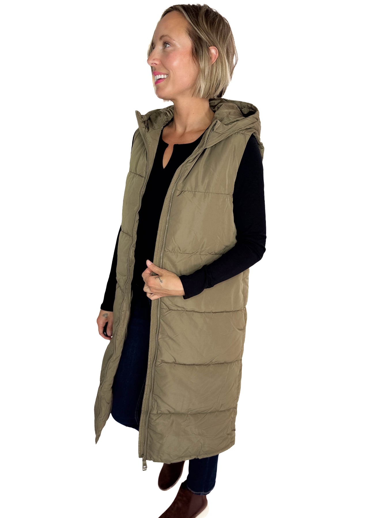 ONLY Jackson Long Puffer Vest- OLIVE STONE