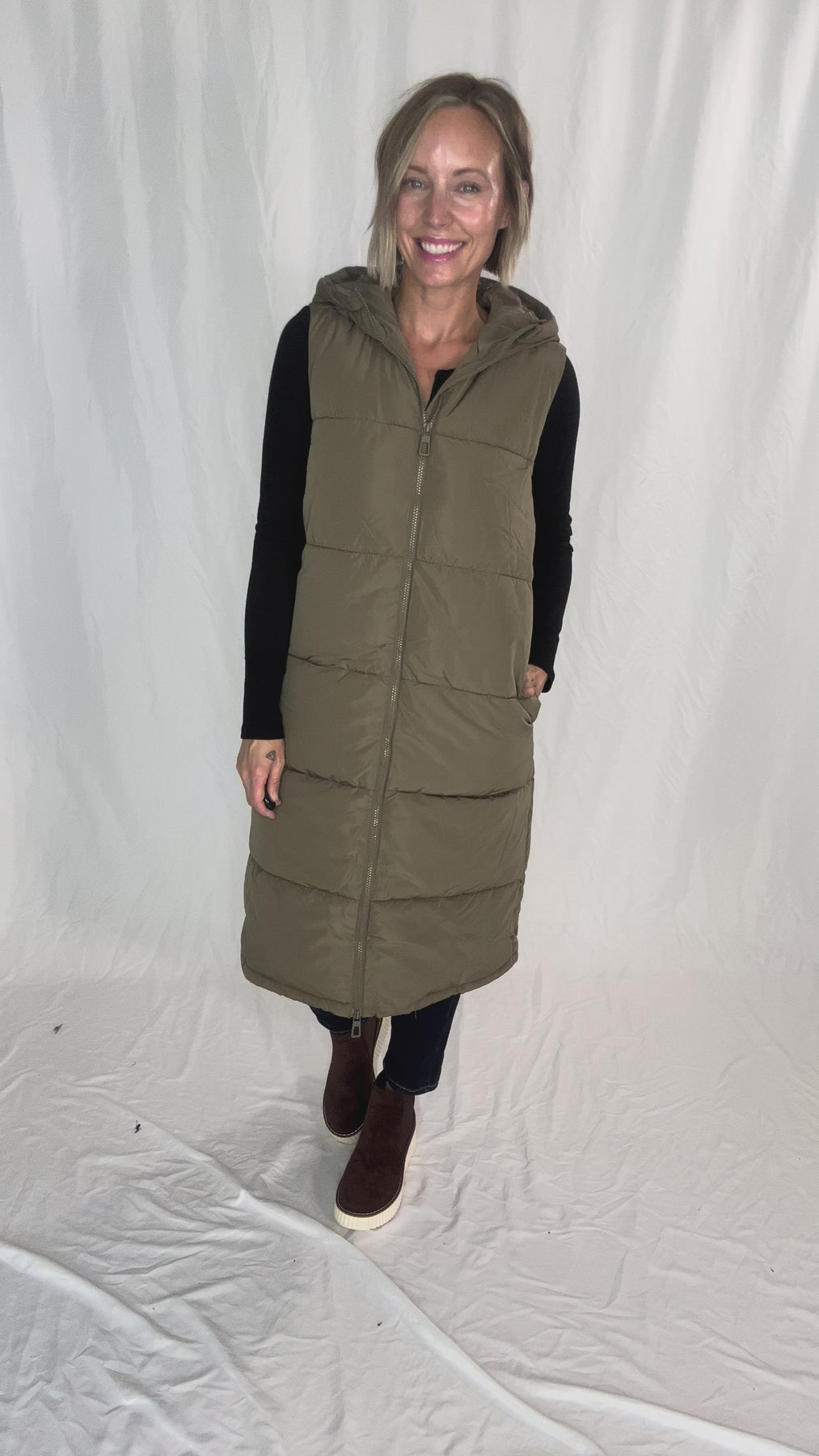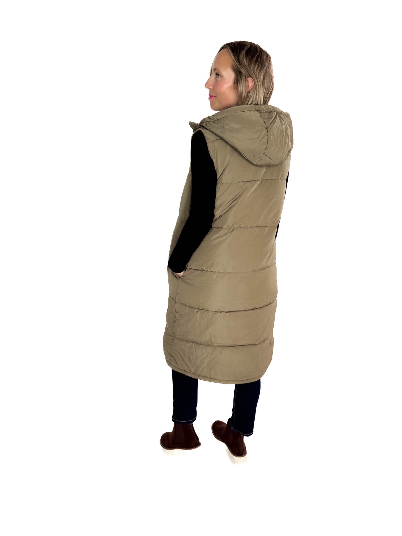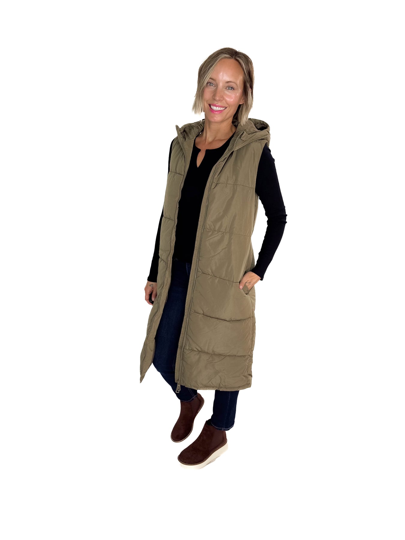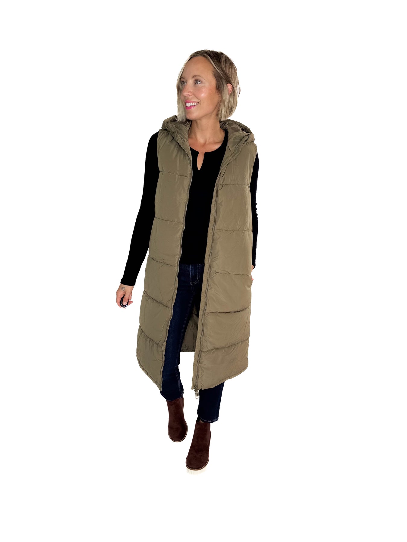 ONLY Jackson Long Puffer Vest- OLIVE STONE