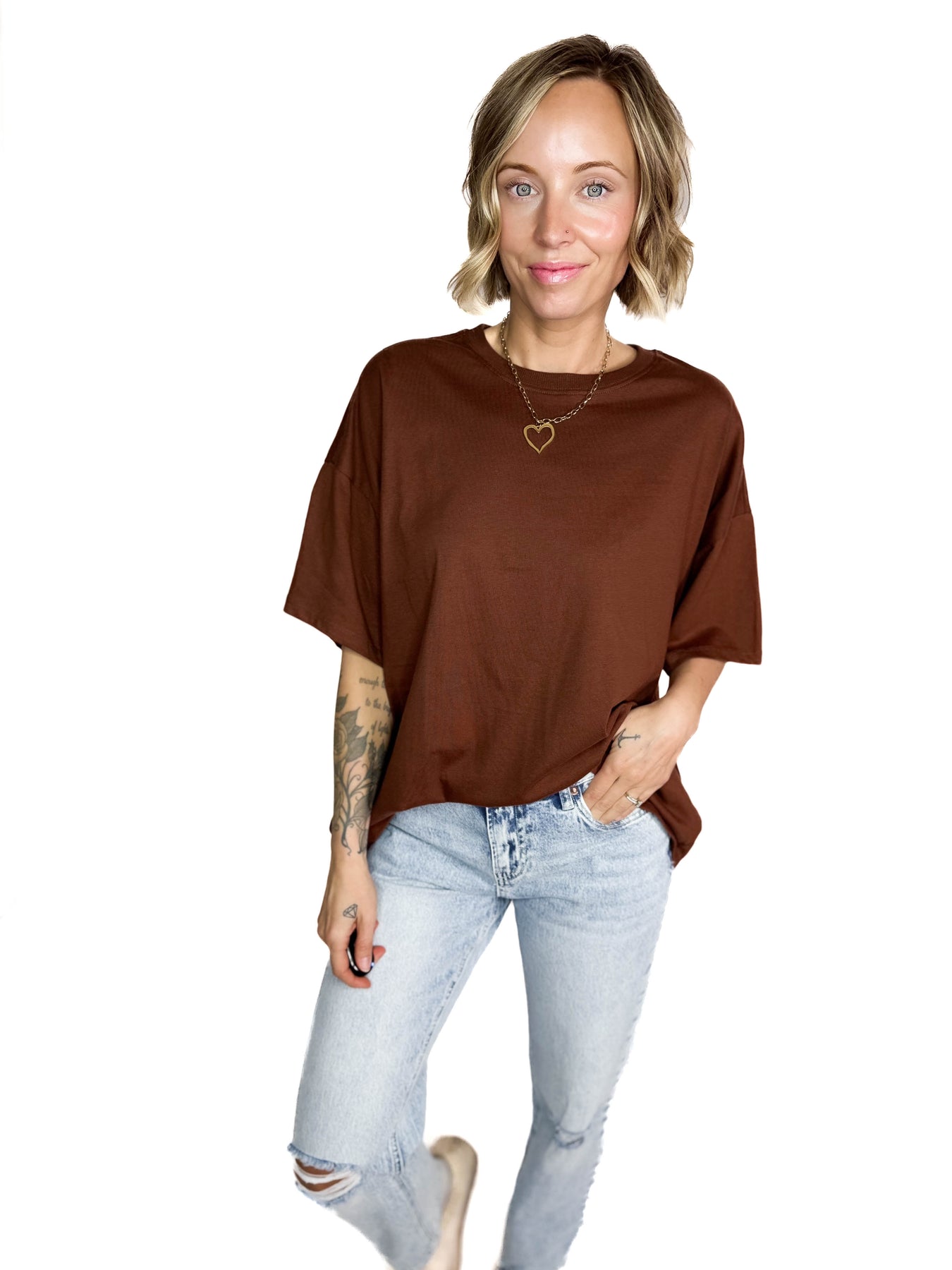 Snow Cap Oversized Cotton Tee- CHESTNUT