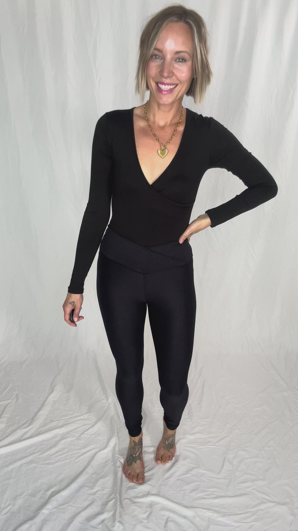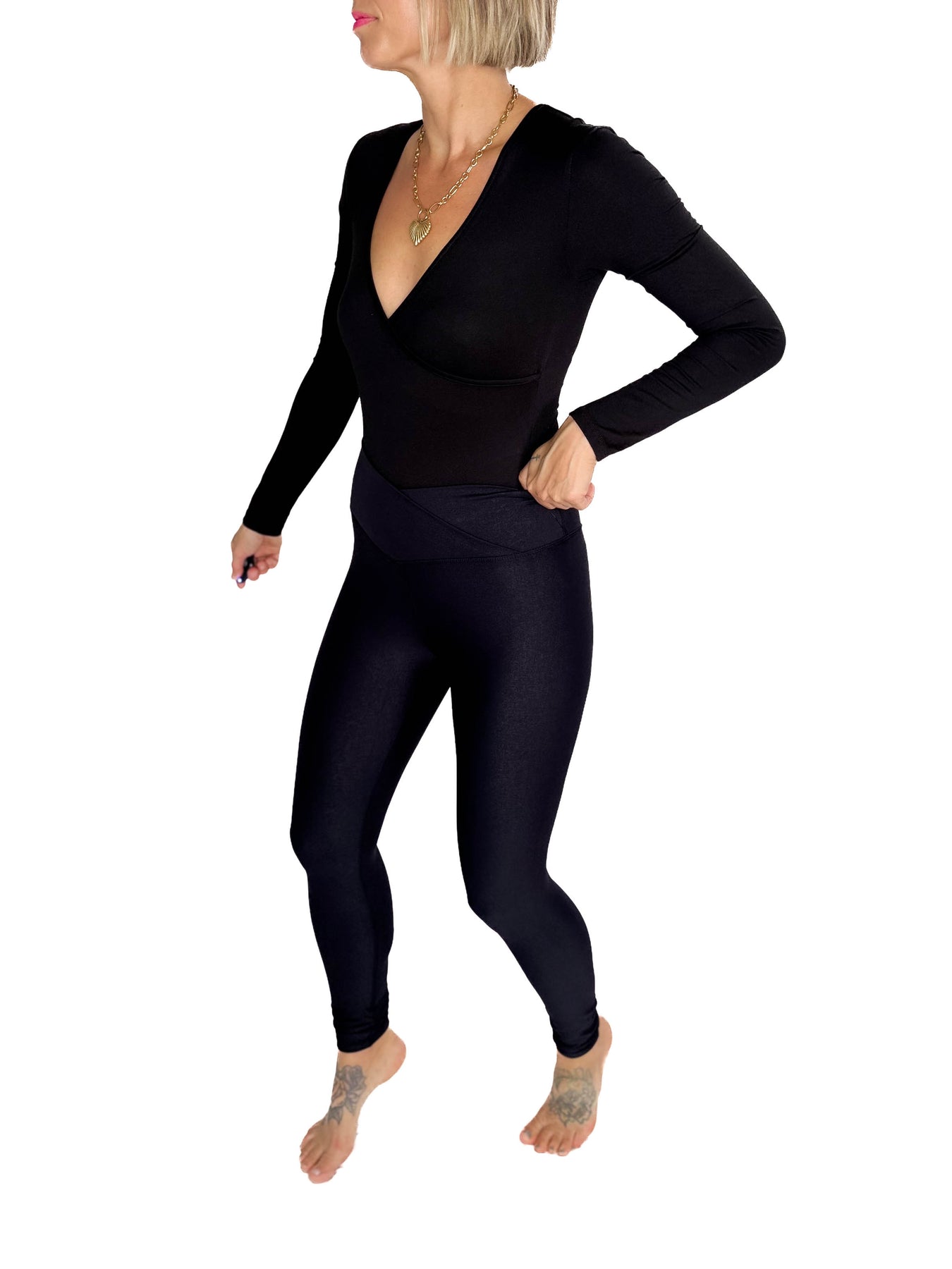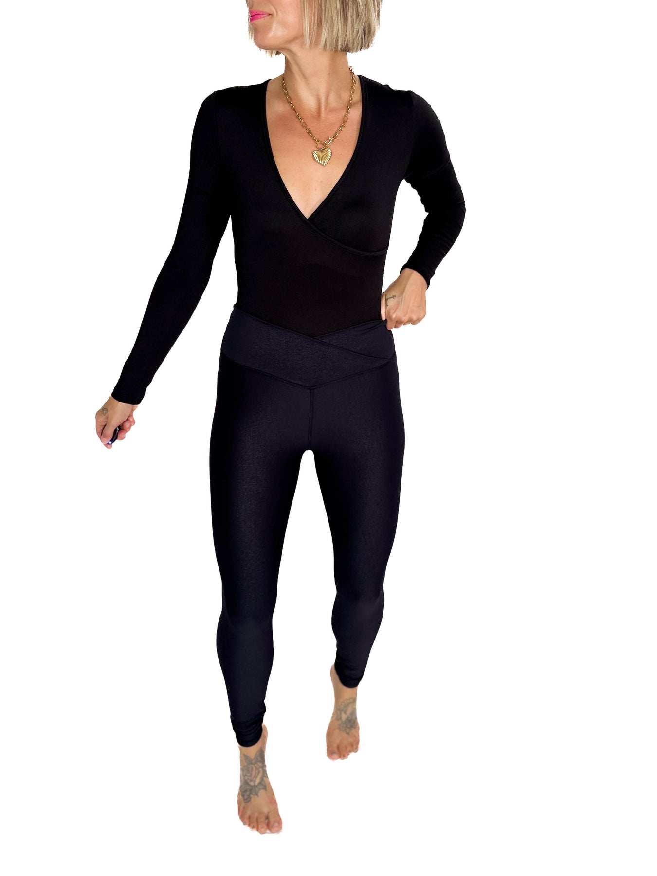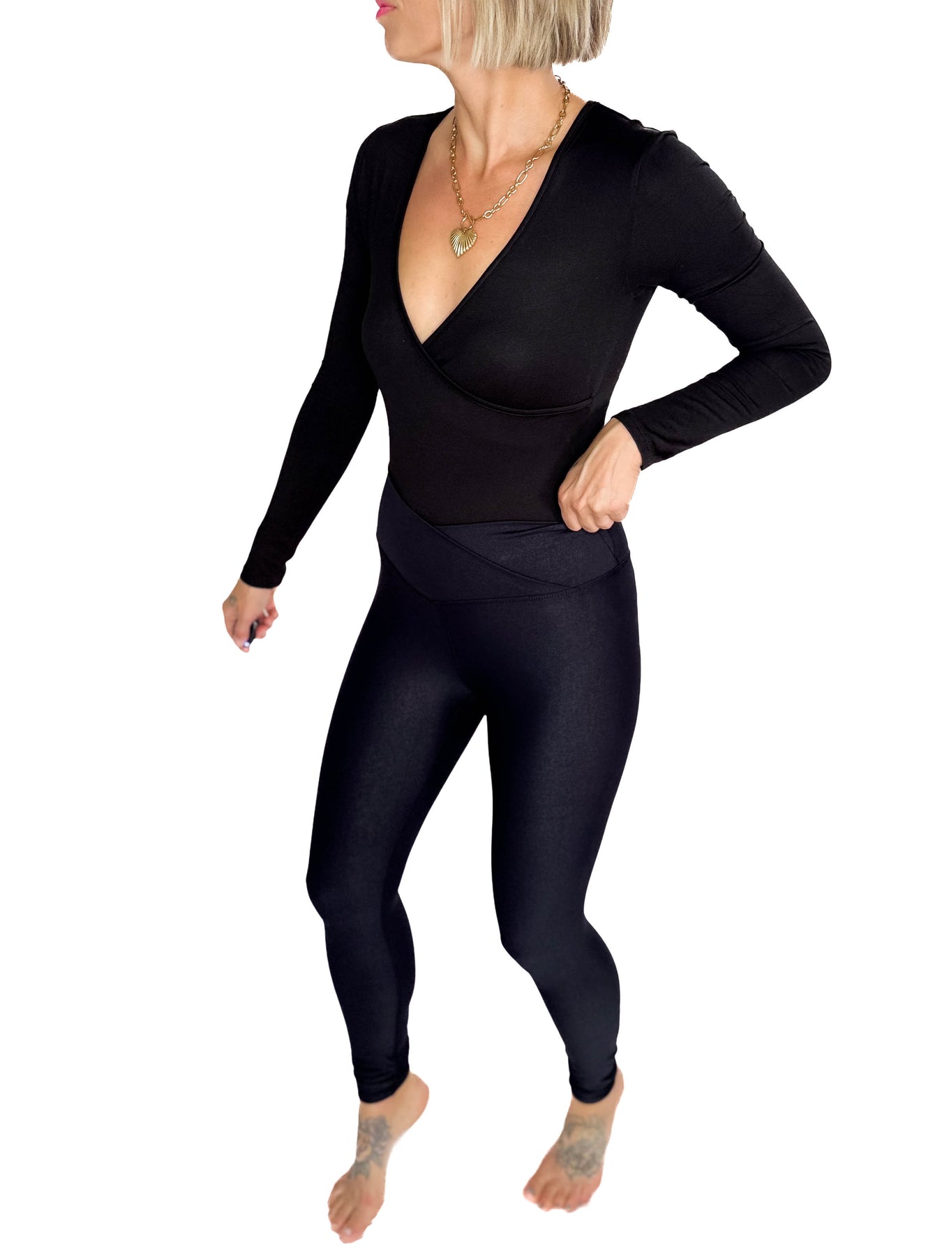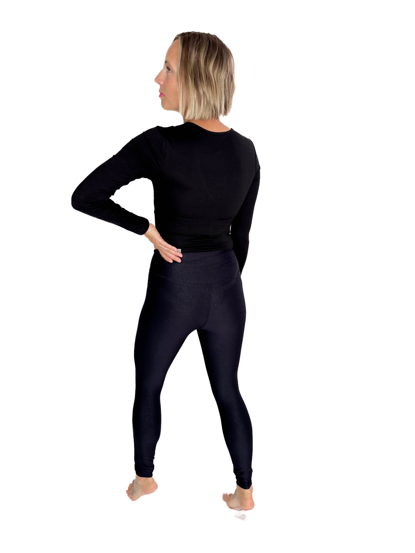 Additional:  Cross. Over Waistband, Black Shimmer, Soft.