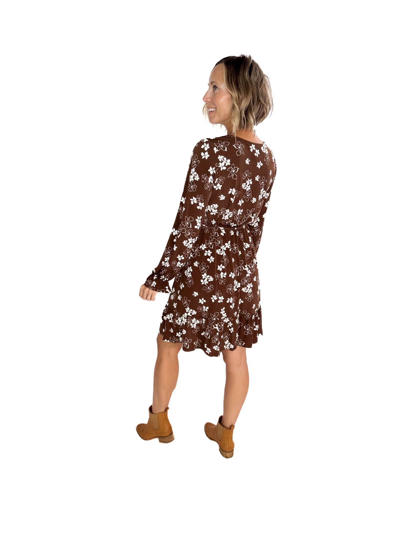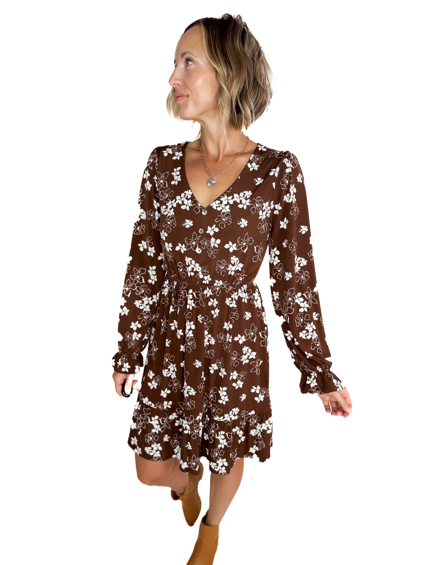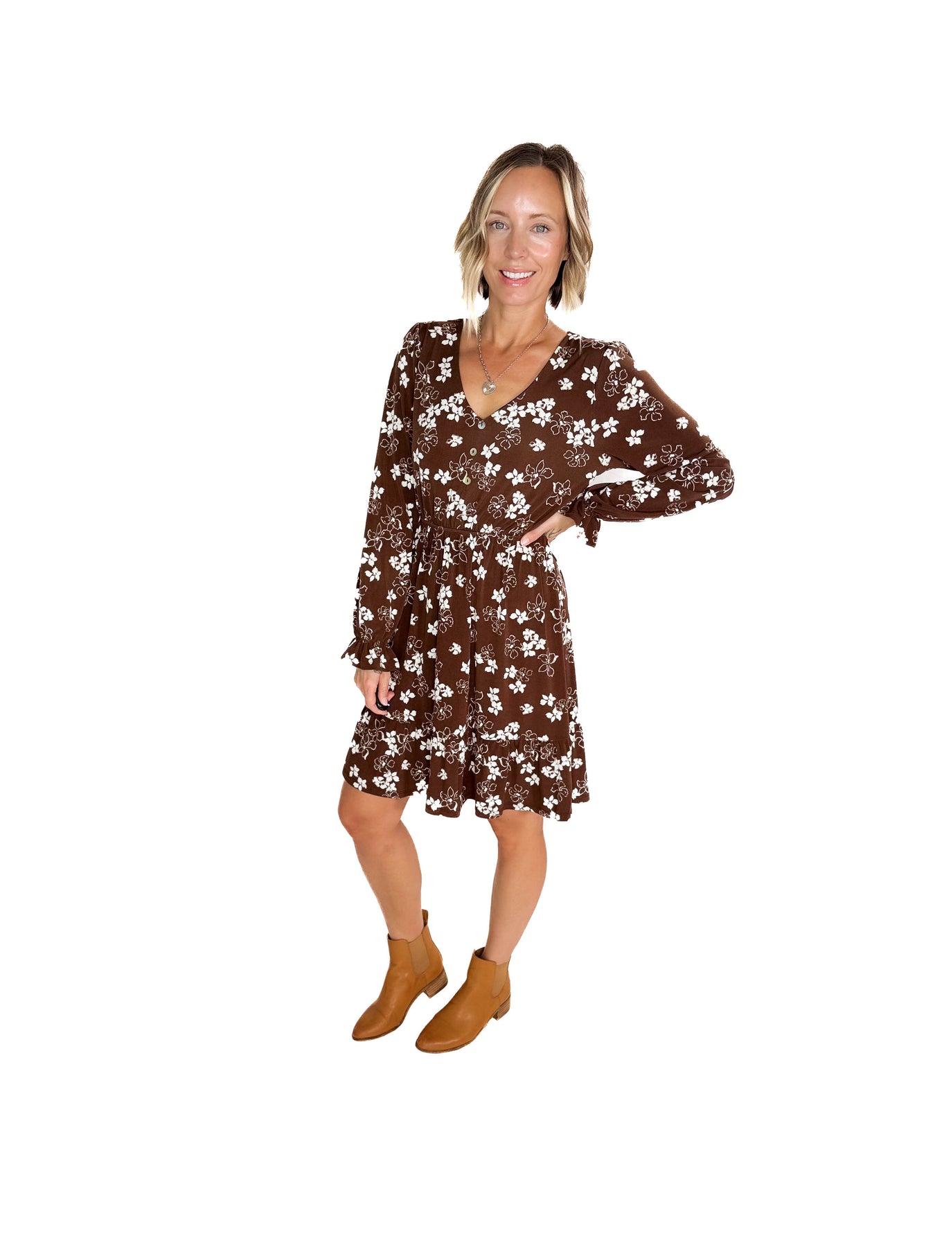 Comfort meets charm- This stretchy floral dress features delicate button details and soft elastic cuffs — perfect for effortless, all-day style.
