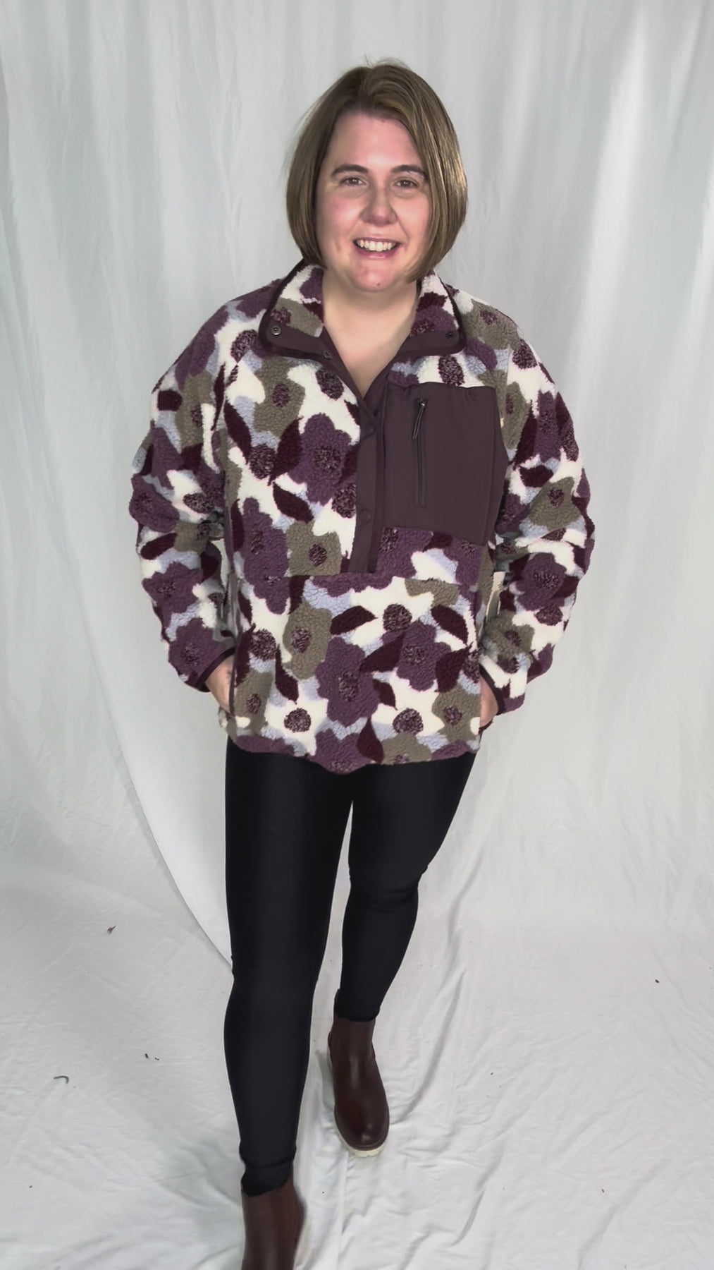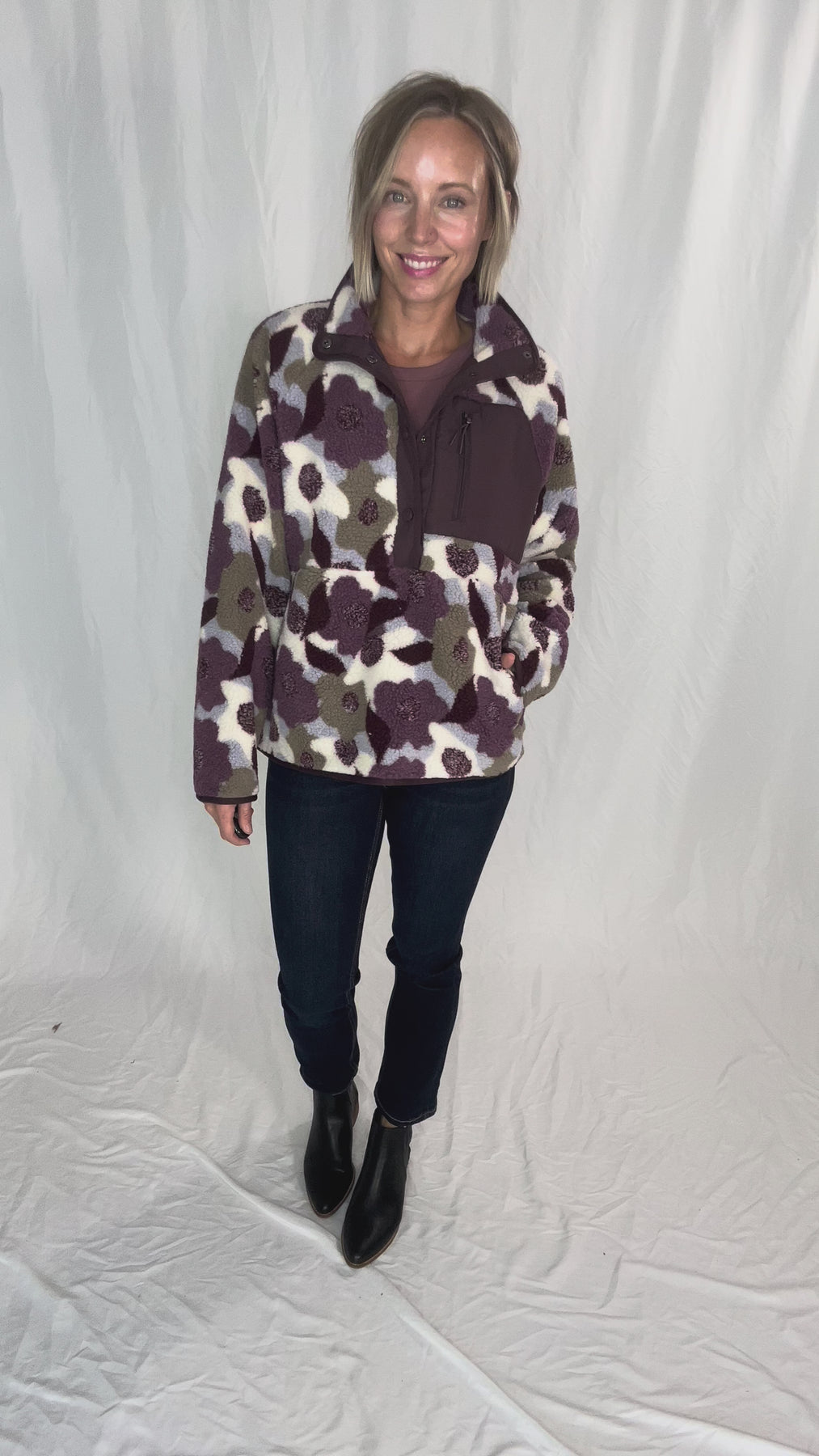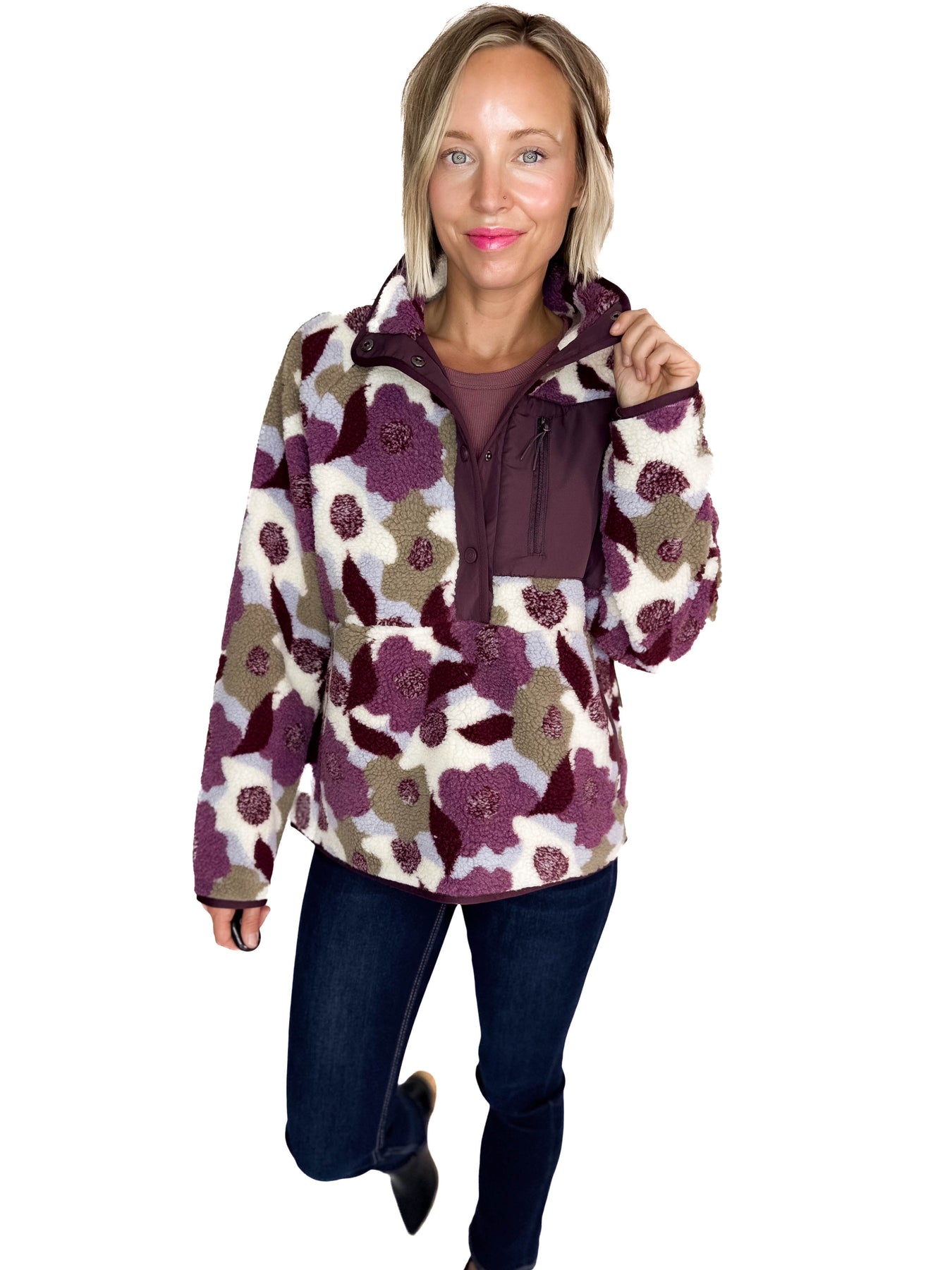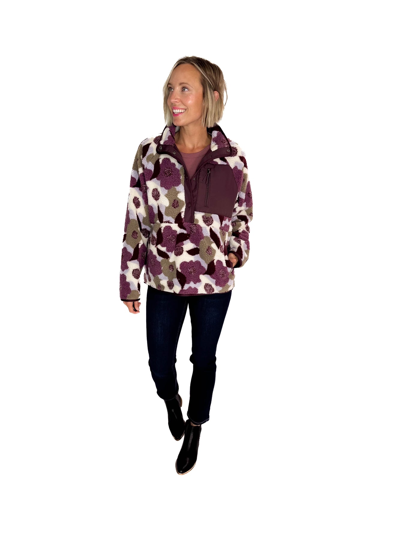 Tara Quarter Snap Sherpa Pullover- SASSAFRAS RETRO FLORAL
