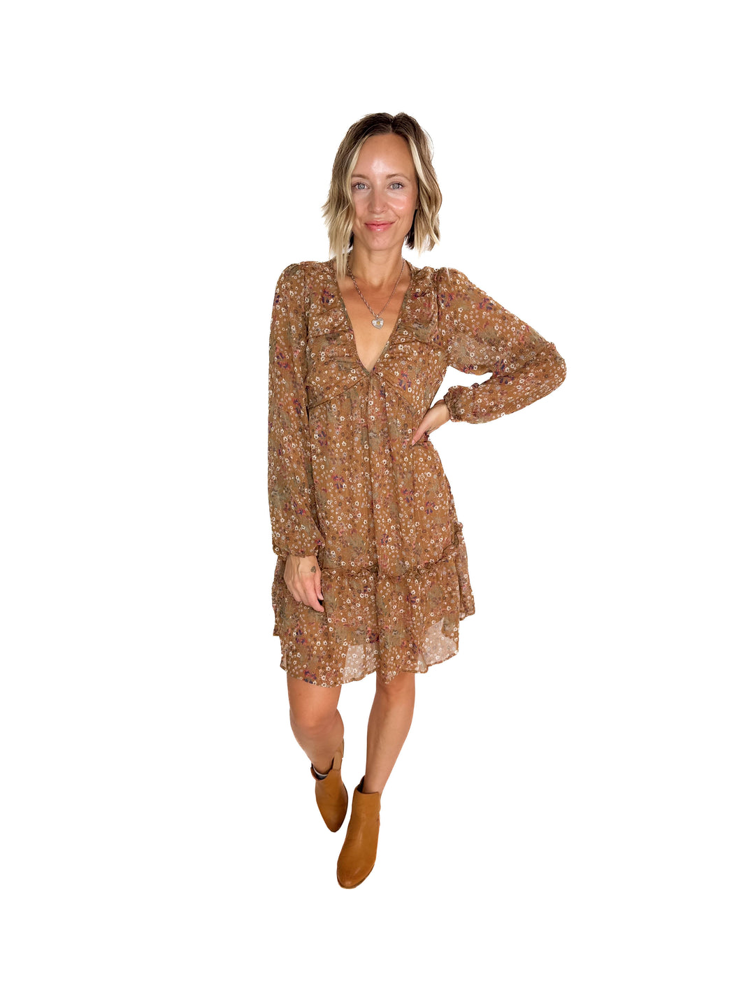 Cailyn Long Sleeve Floral Baby Doll Dress- MOCHA-FINAL SALE *S*