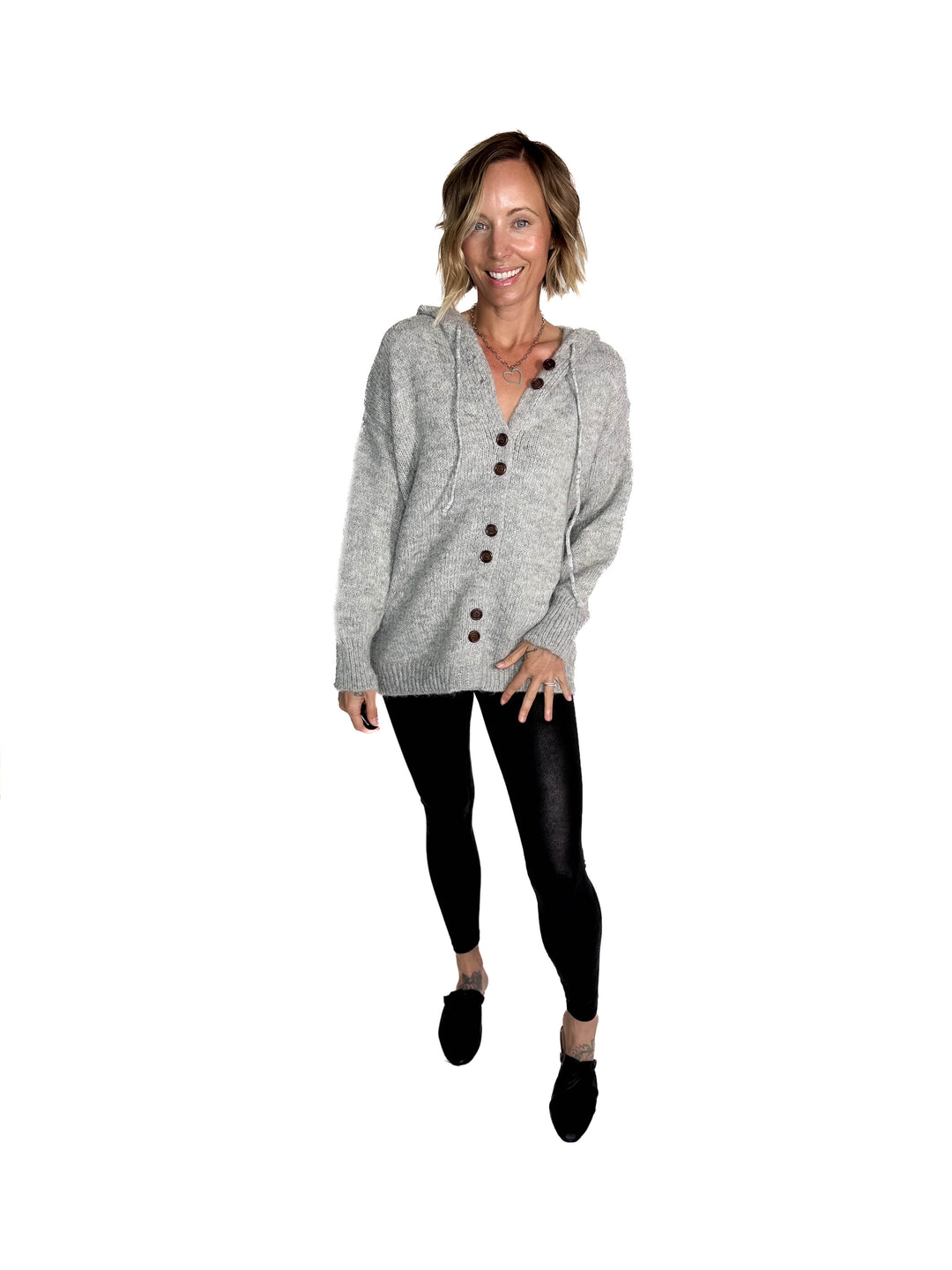 Malachai Button Down Hoodie Cardigan- GREY