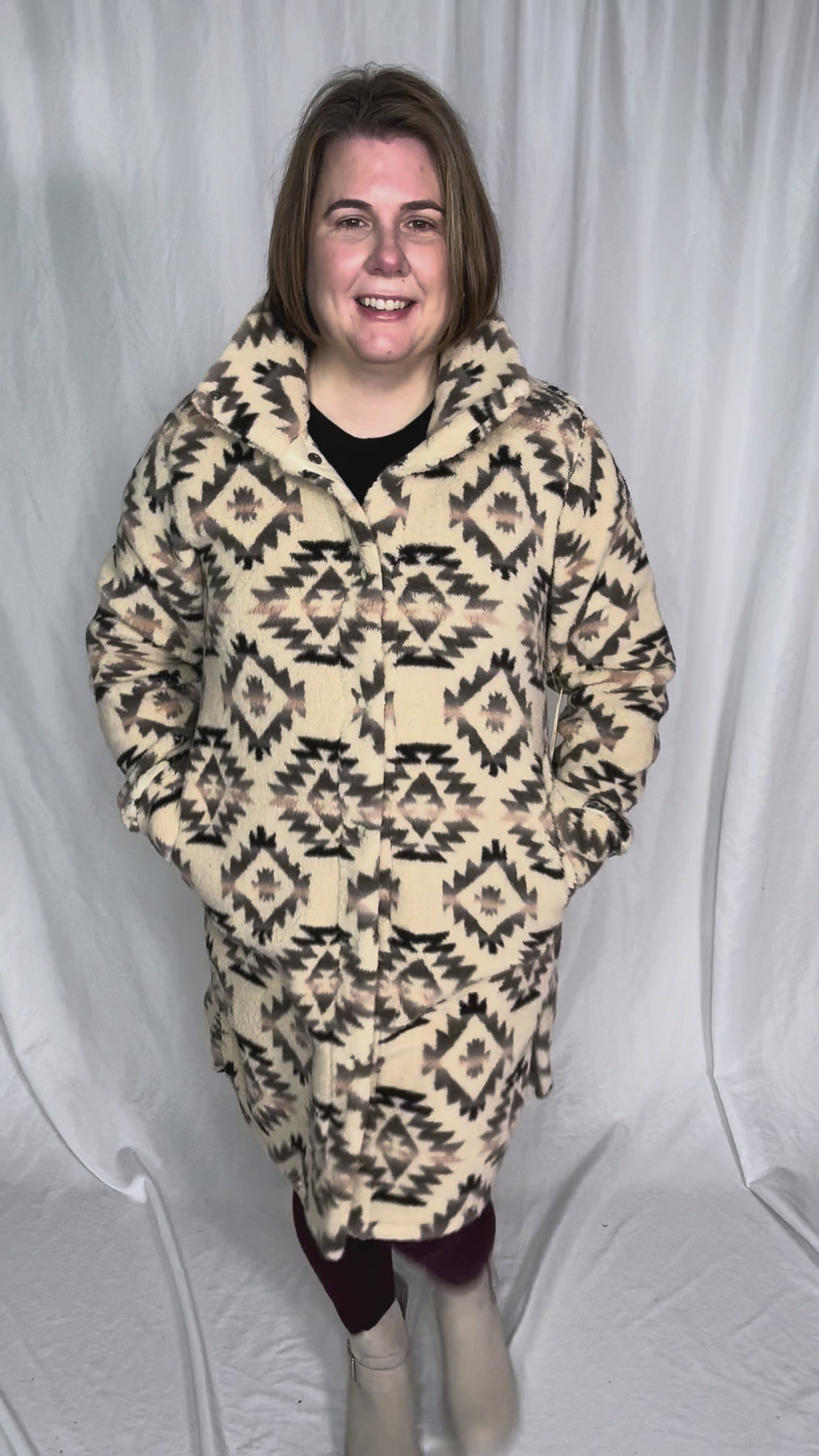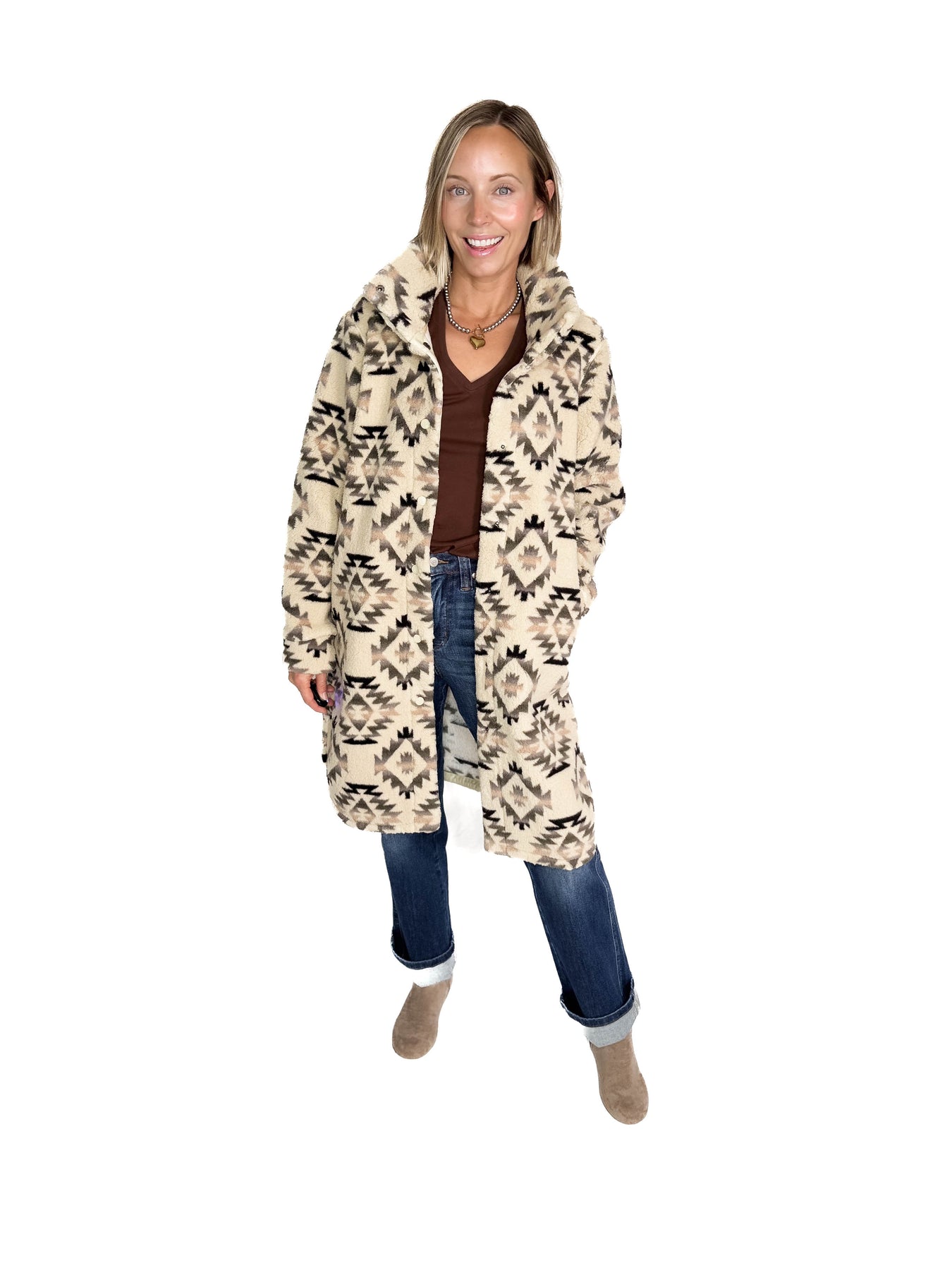 Ainsley Longline Sherpa Jacket- WOOD ASH DIAMOND-FINAL SALE