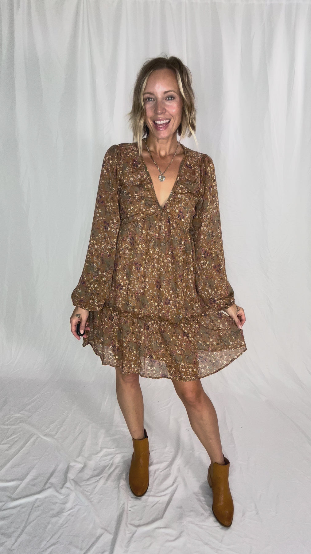 Cailyn Long Sleeve Floral Baby Doll Dress- MOCHA-FINAL SALE *S*