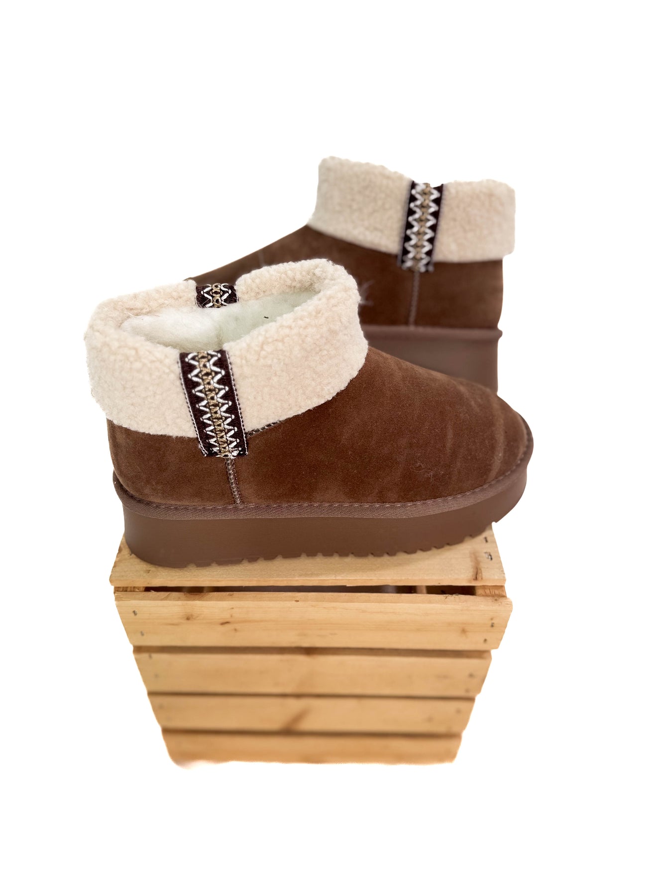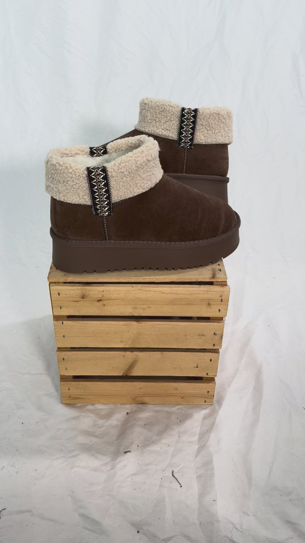Additional: Chunky, Faux Fur, Non Slip, Warm, Embroided Detail, Faux Fur, Vegan Suede