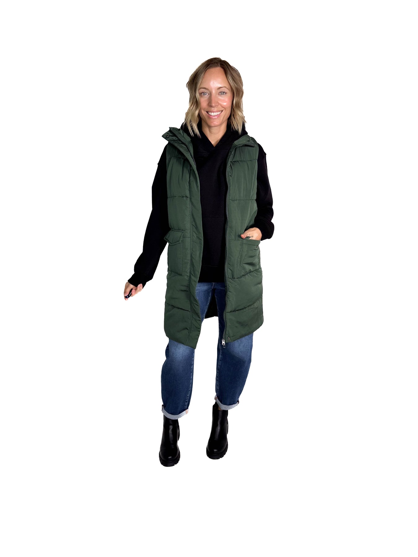 Additional: Longline Puffer Vest, Full Zip & Snap Closures, Lined, Warm, Side Pockets