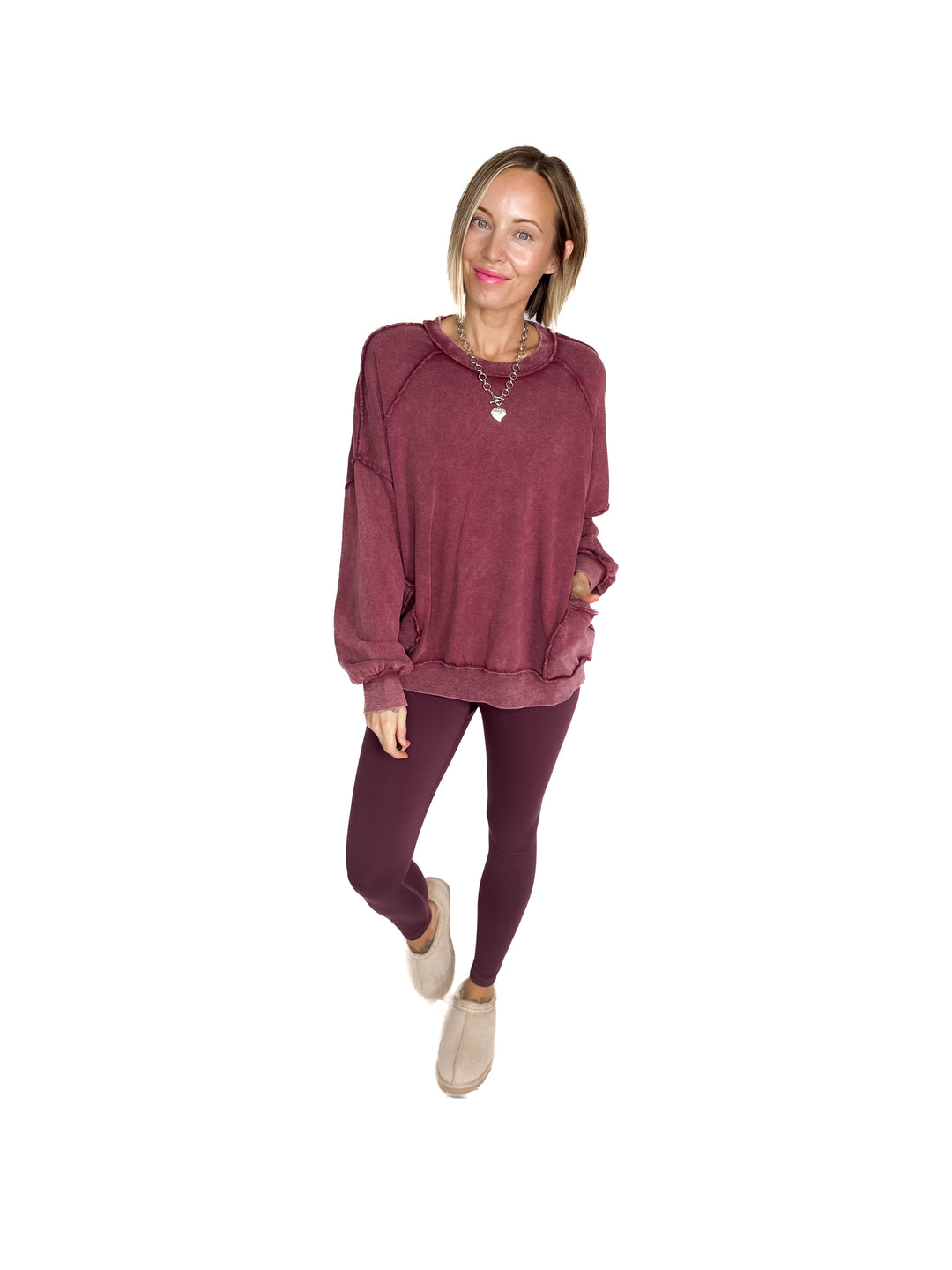 Margot 1/2 Snap Pullover- DARK CHERRY