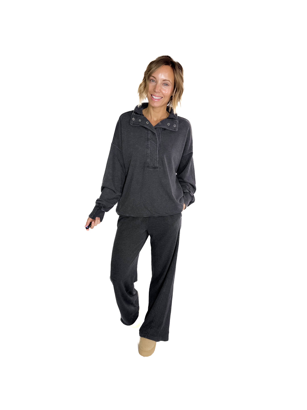 Margot 1/2 Snap Pullover- WASHED BLACK