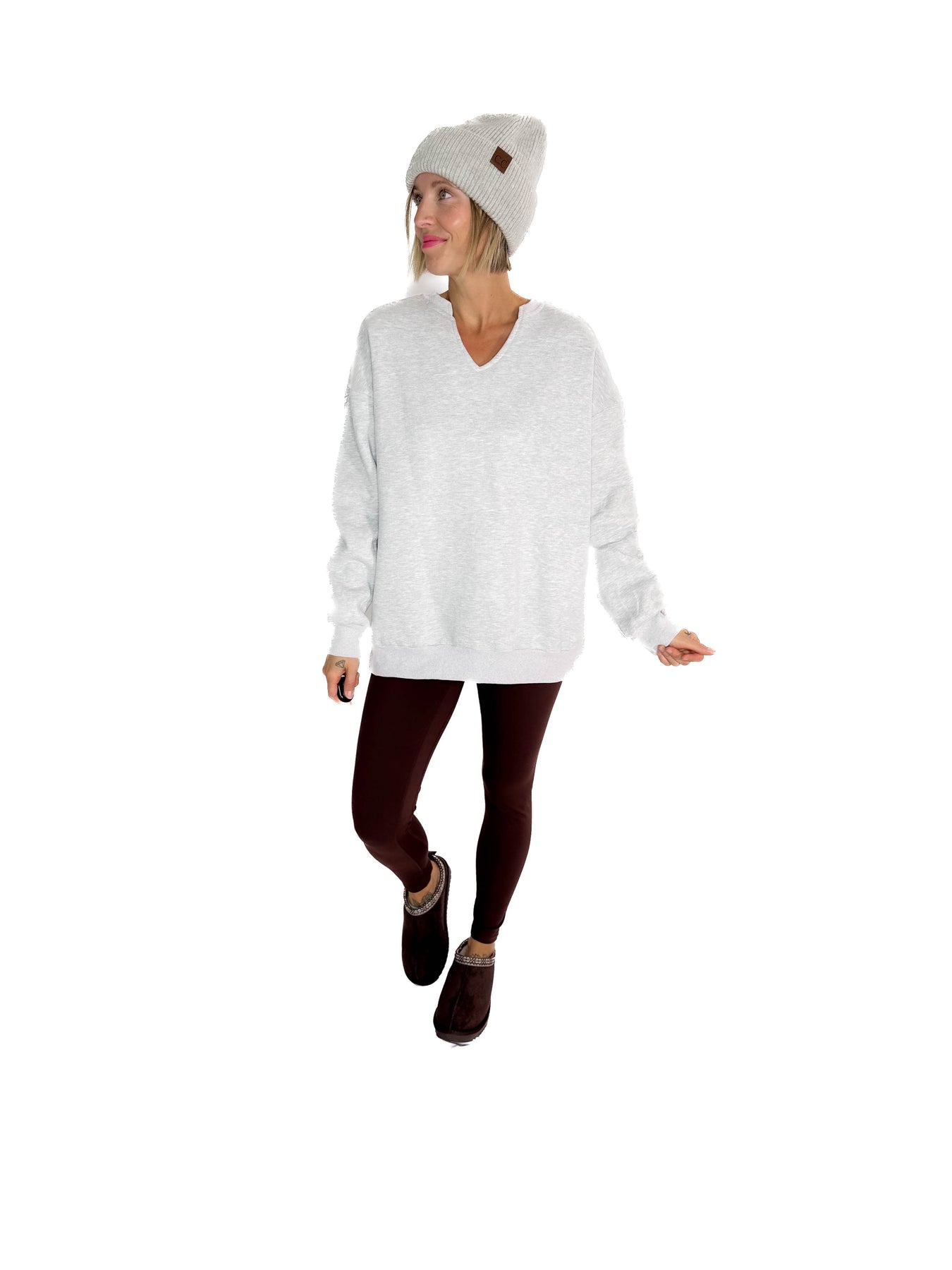 Birdie Split Hem Fleece Pullover- HTHR GREY
