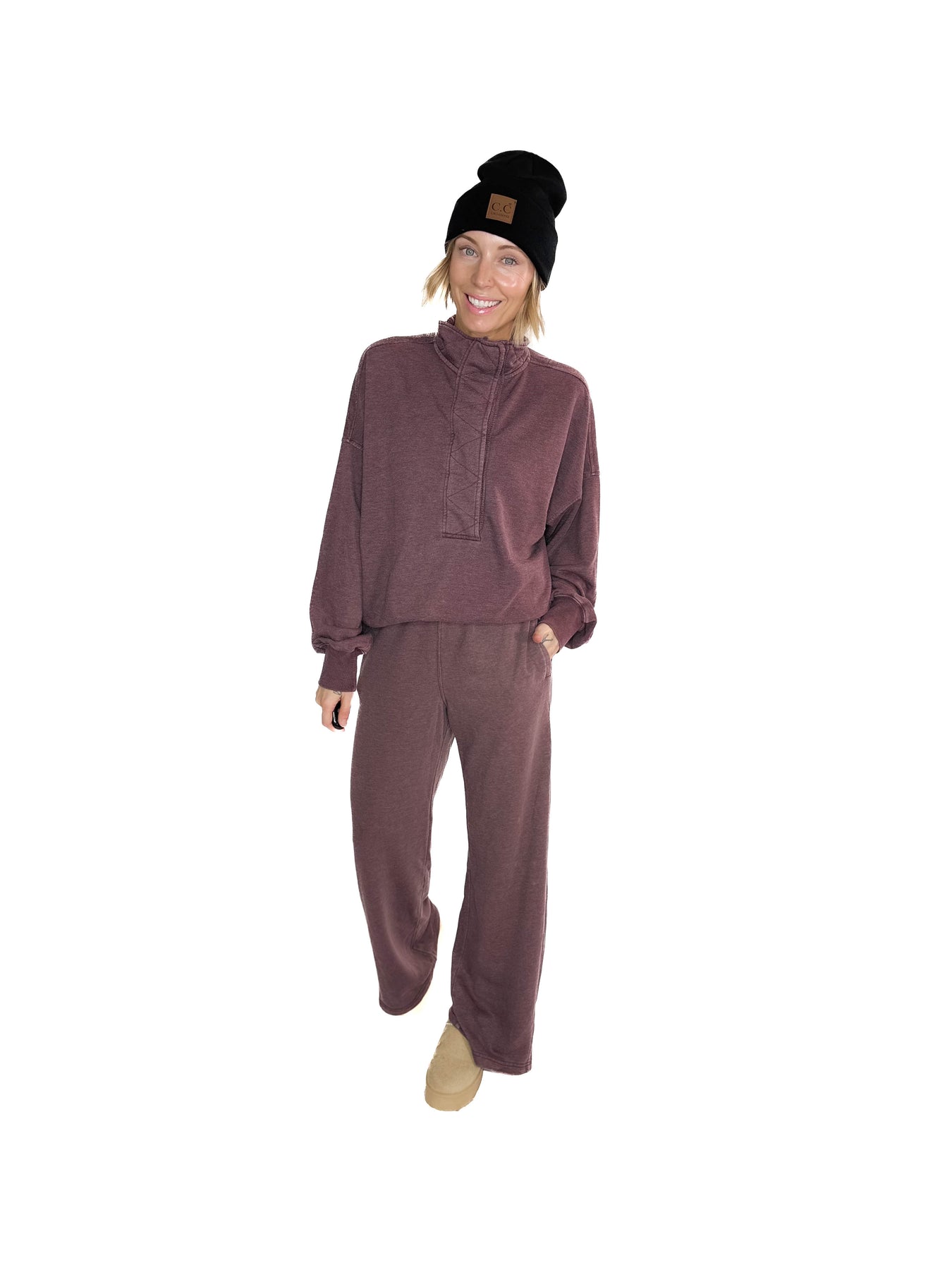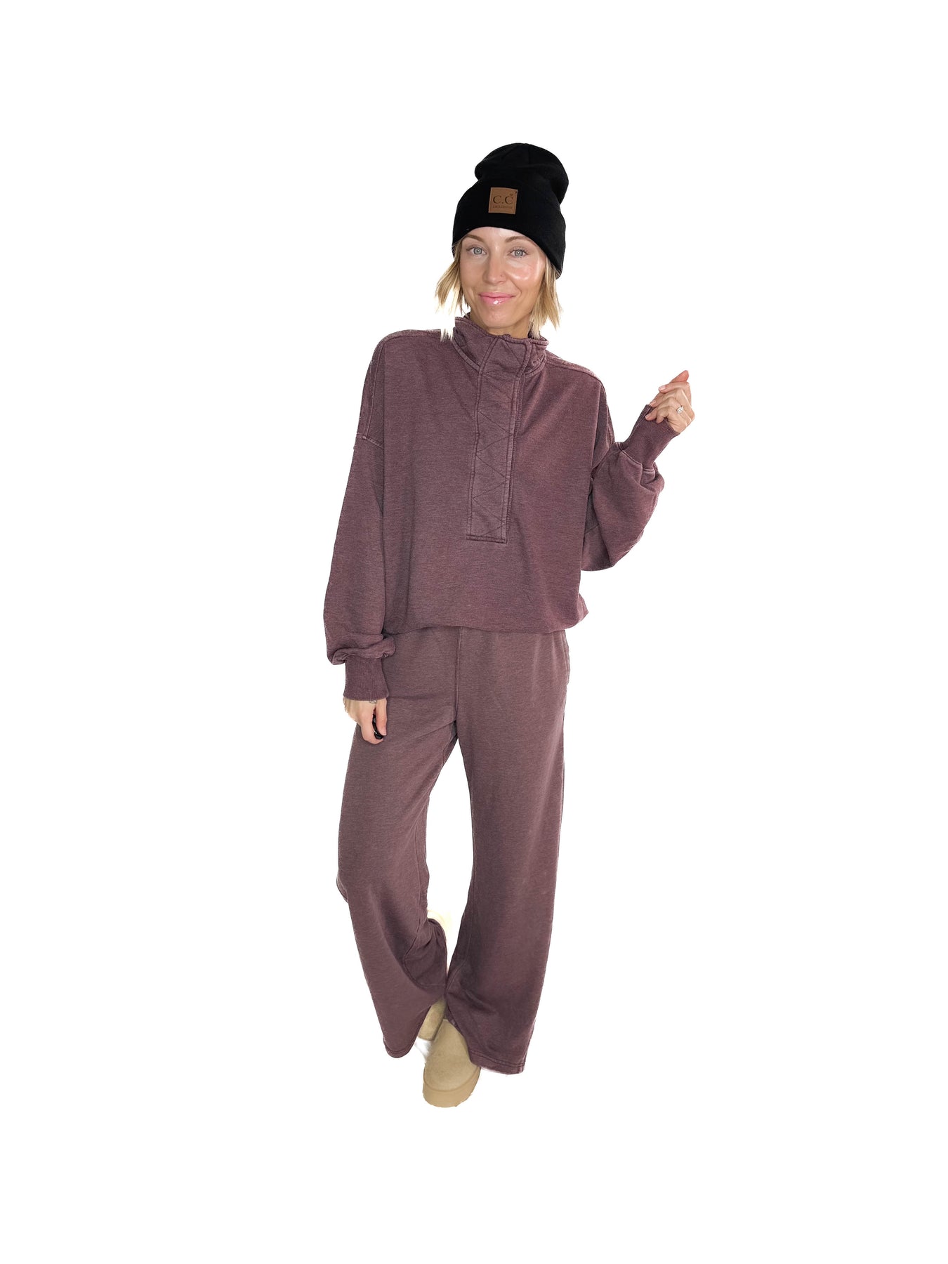 Margot 1/2 Snap Pullover- DARK CHERRY