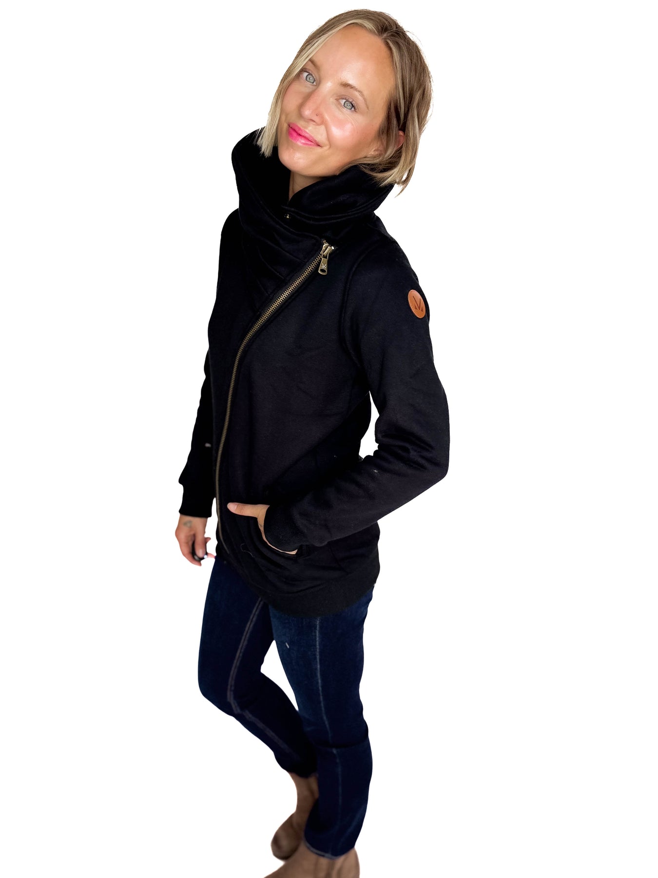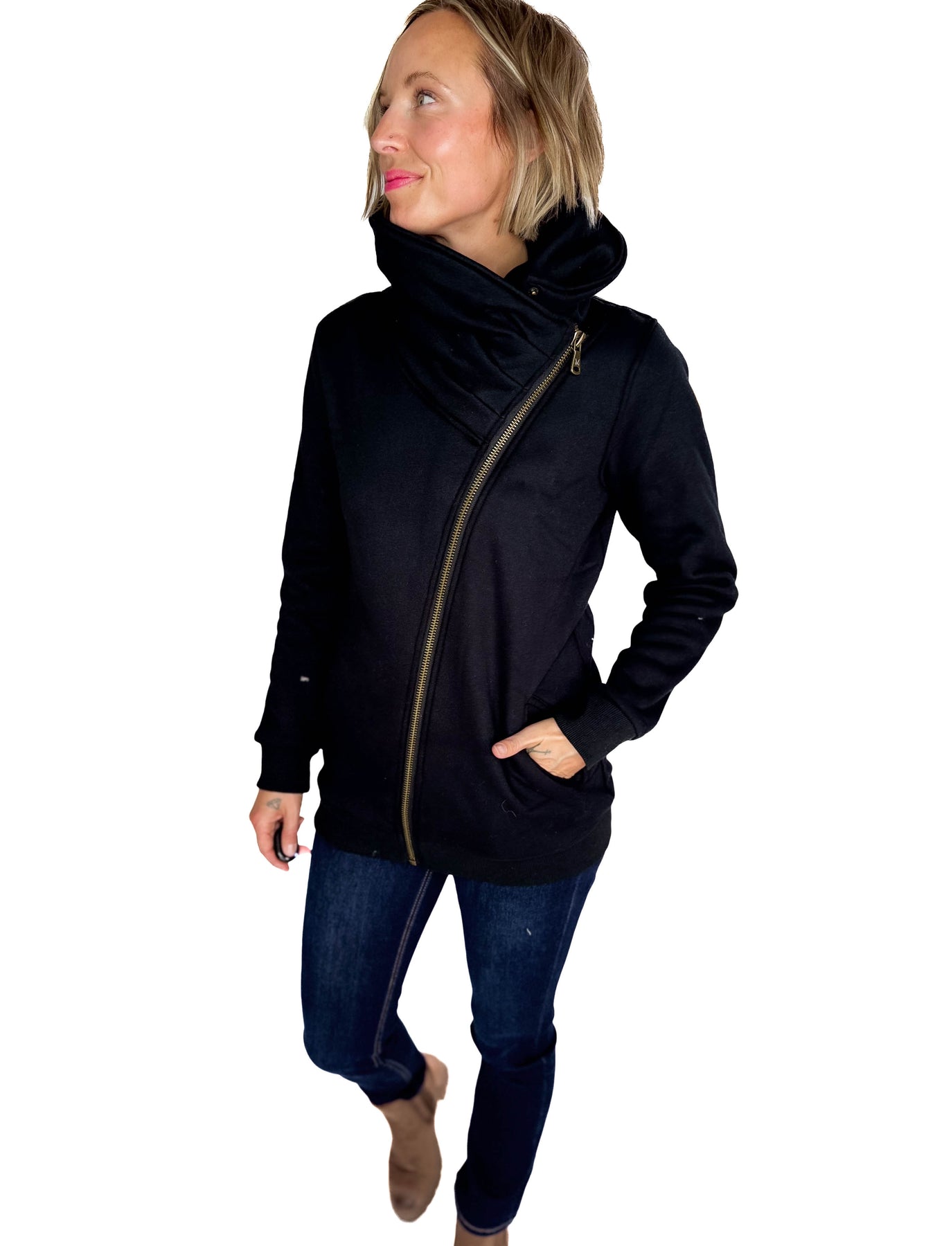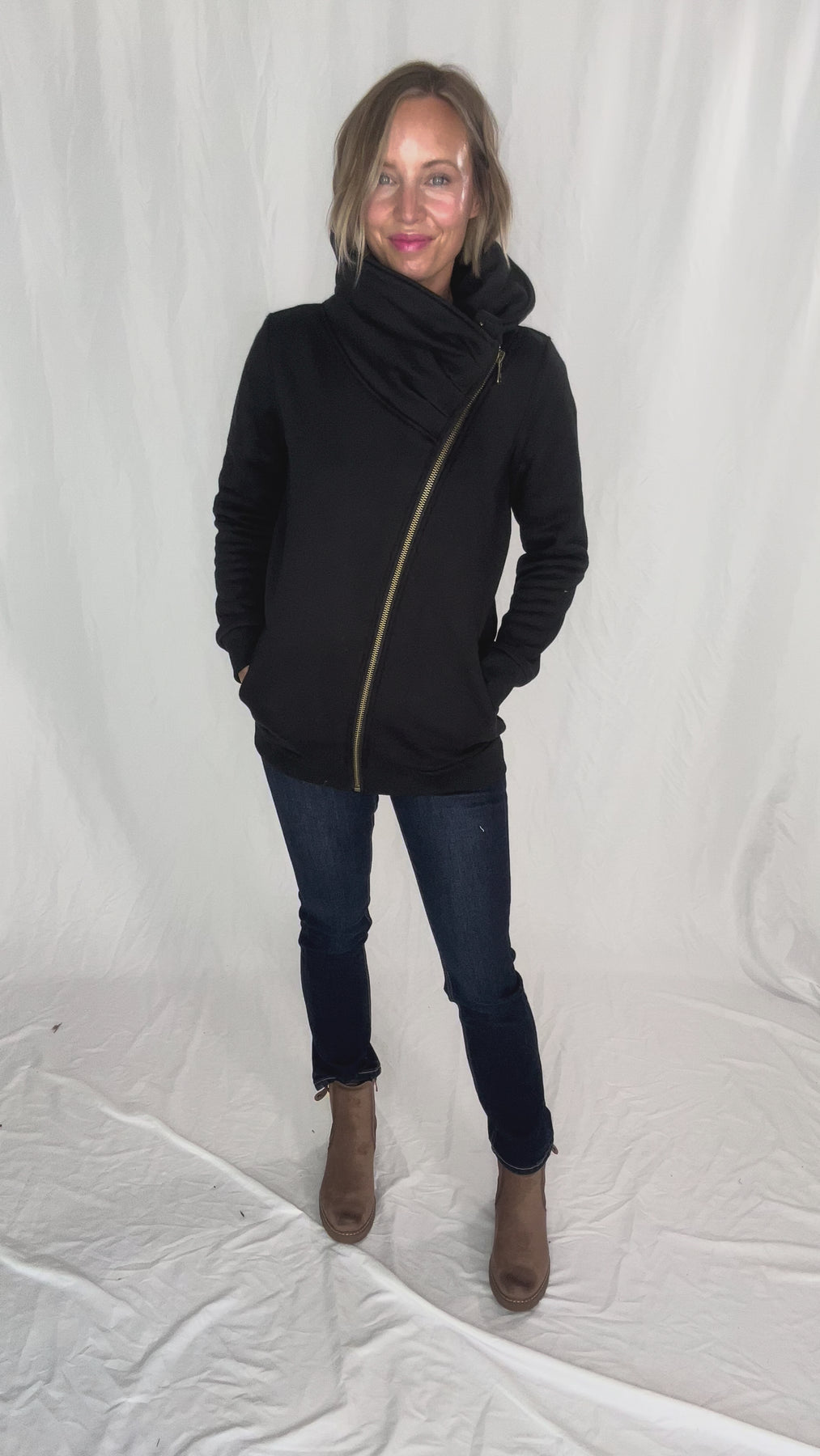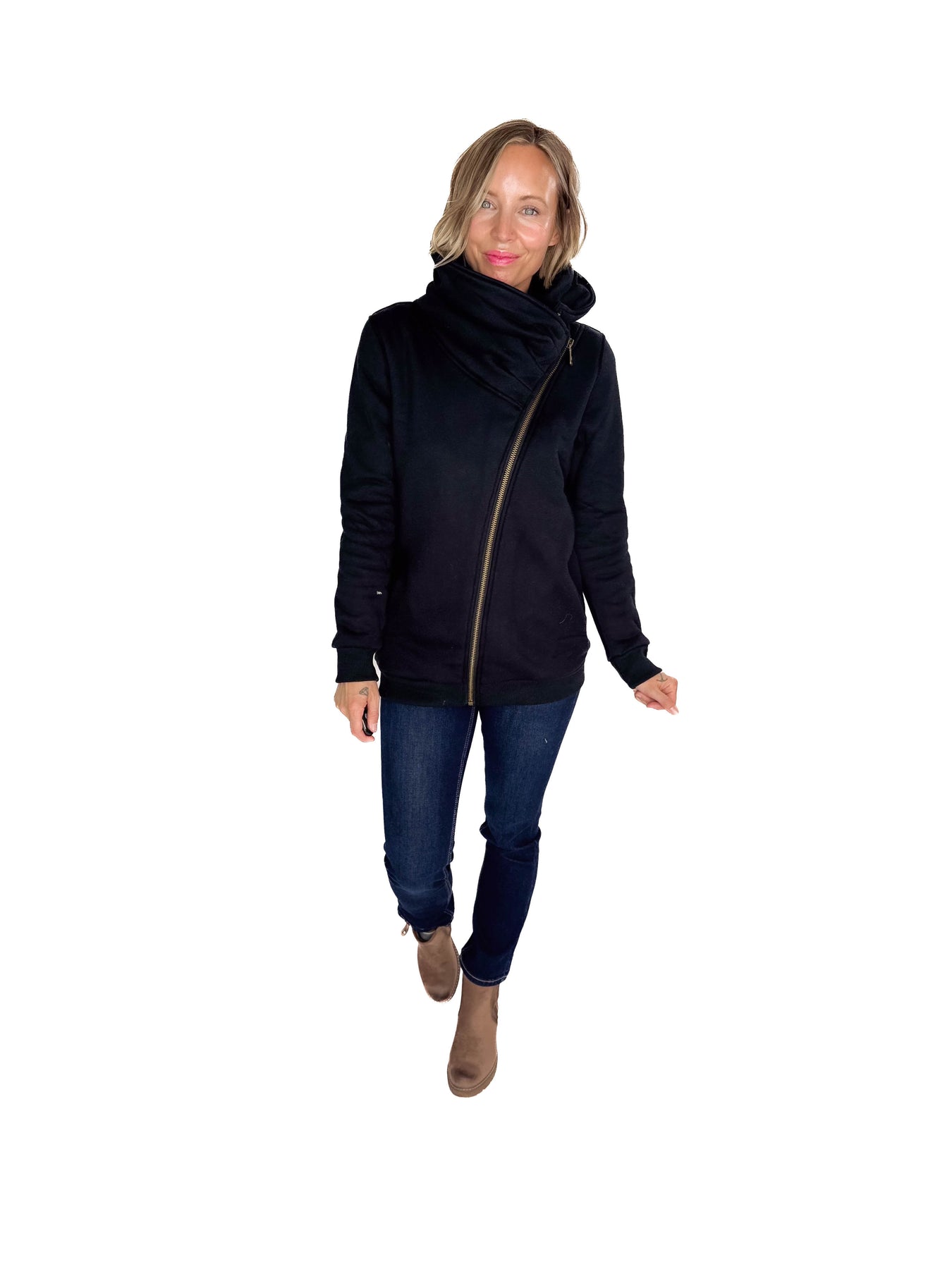 MICHELLE MAE Quinn Premium Cowl Neck Full Zip- BLACK