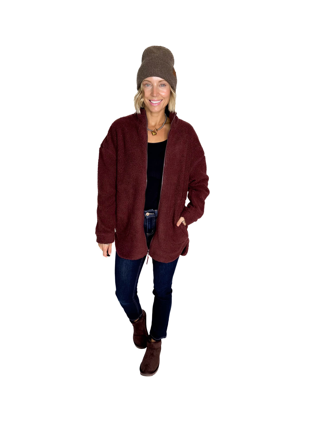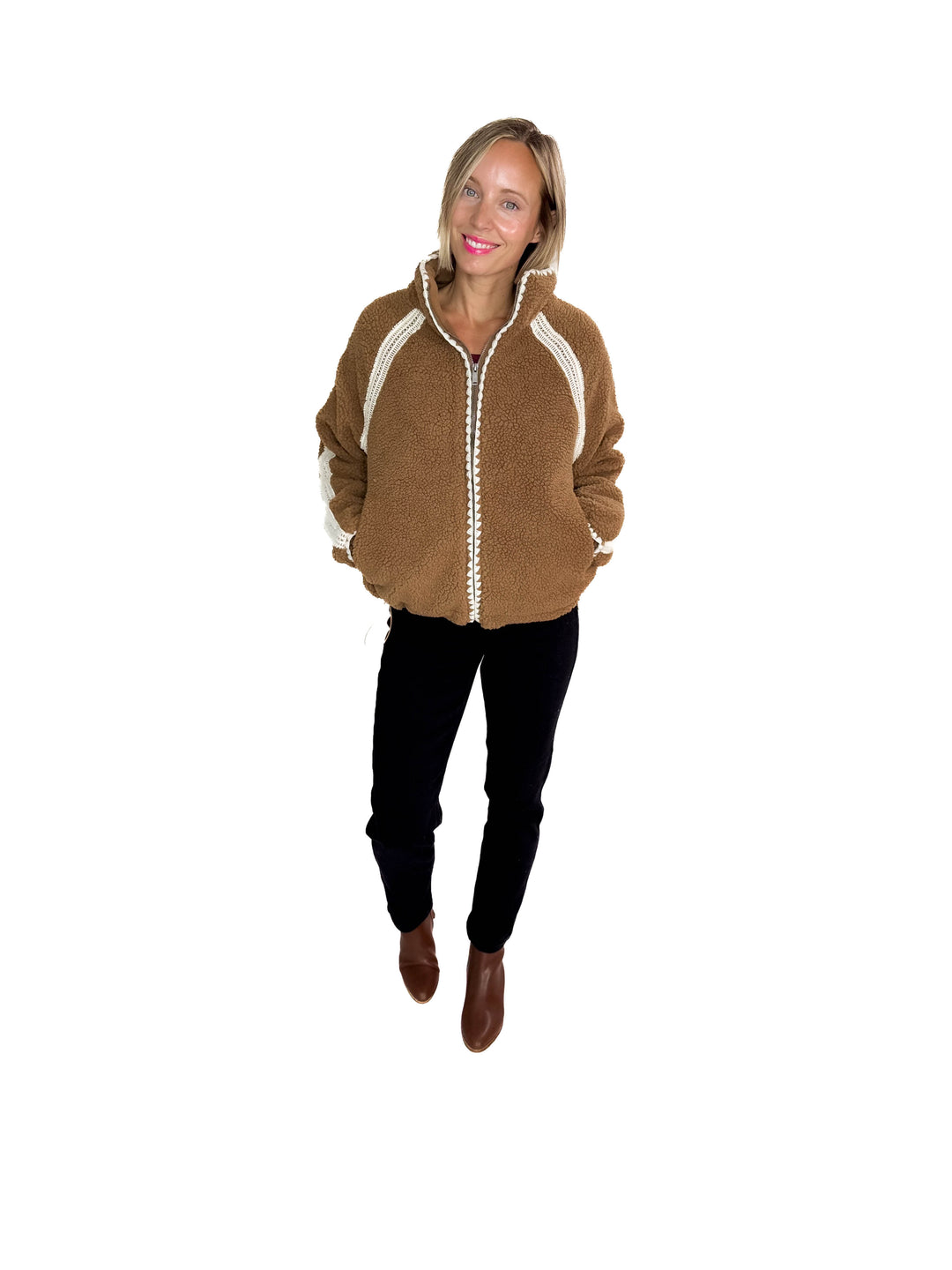 Tara Full Zip Berber Jacket- CHOCOLATE