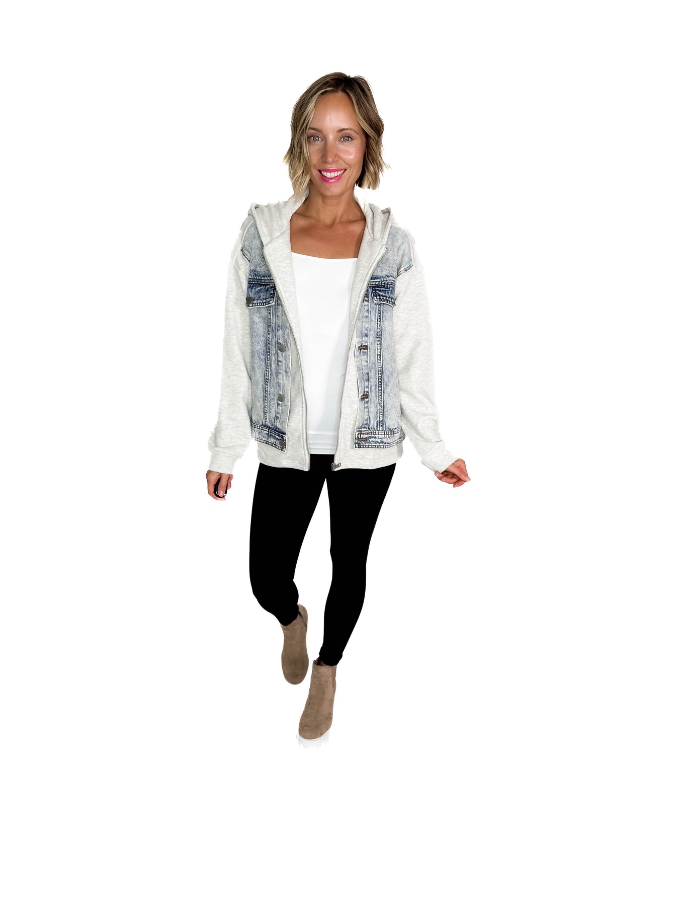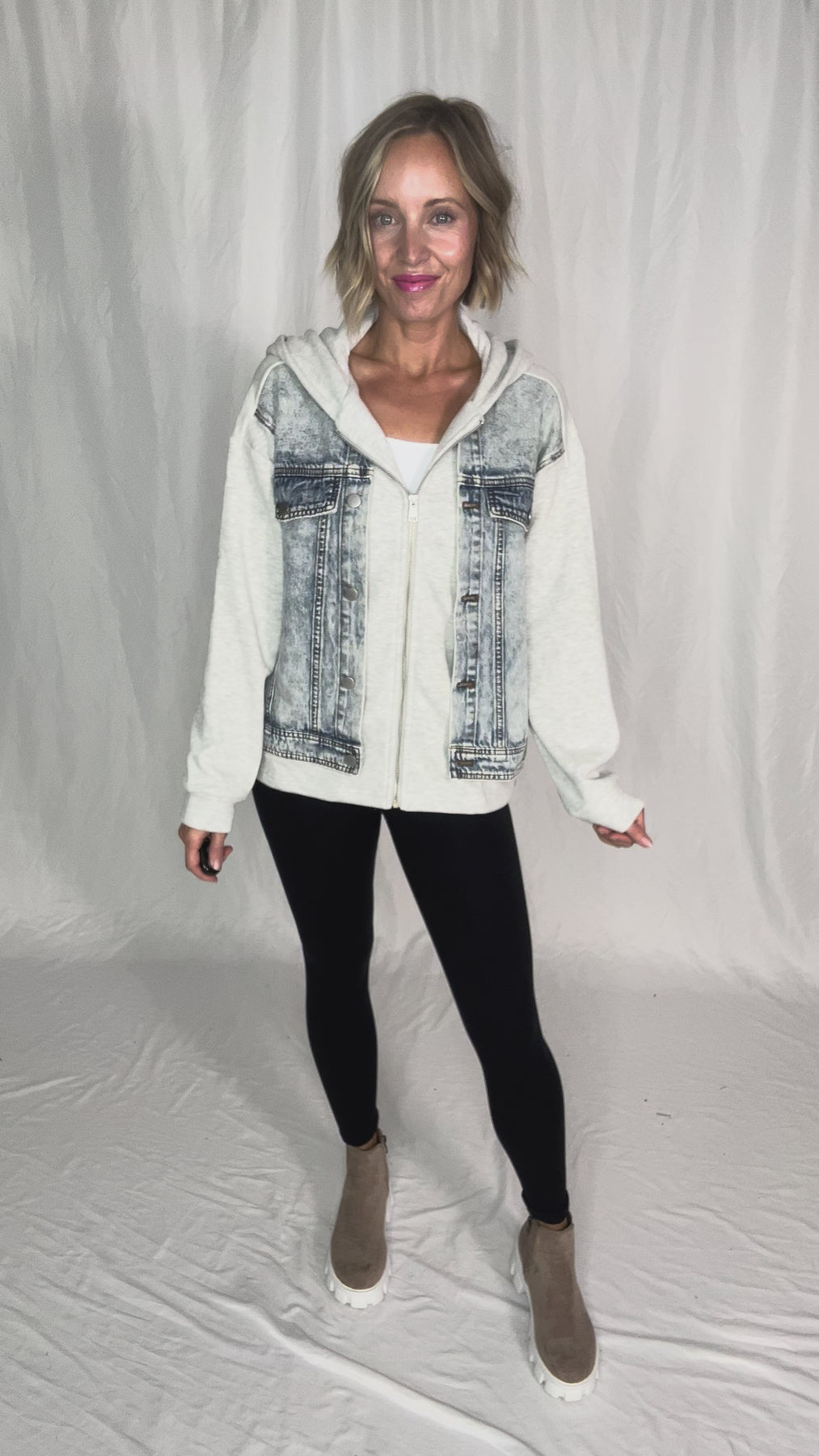 - Denim with a twist — soft hood and relaxed fit for an effortless layered look