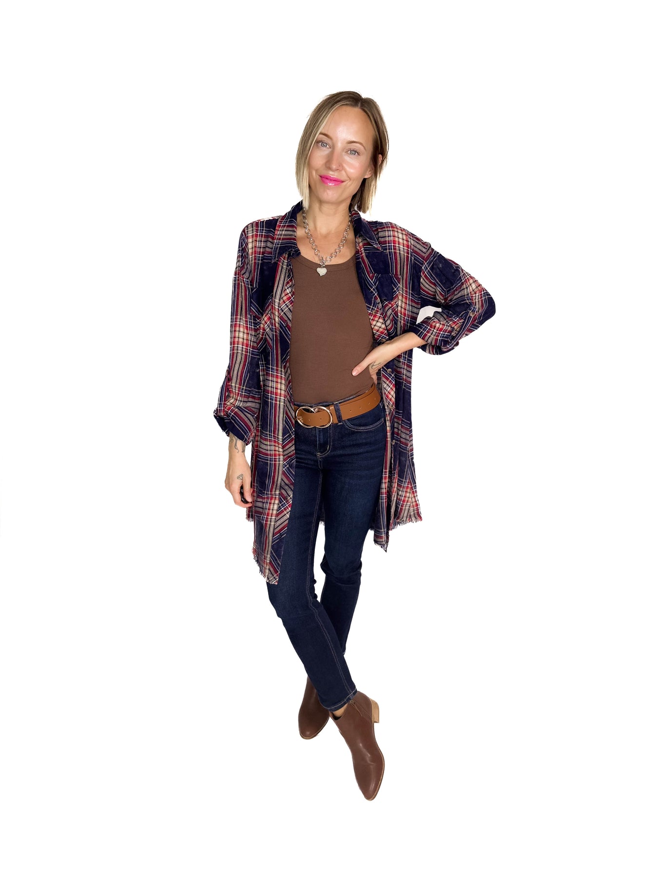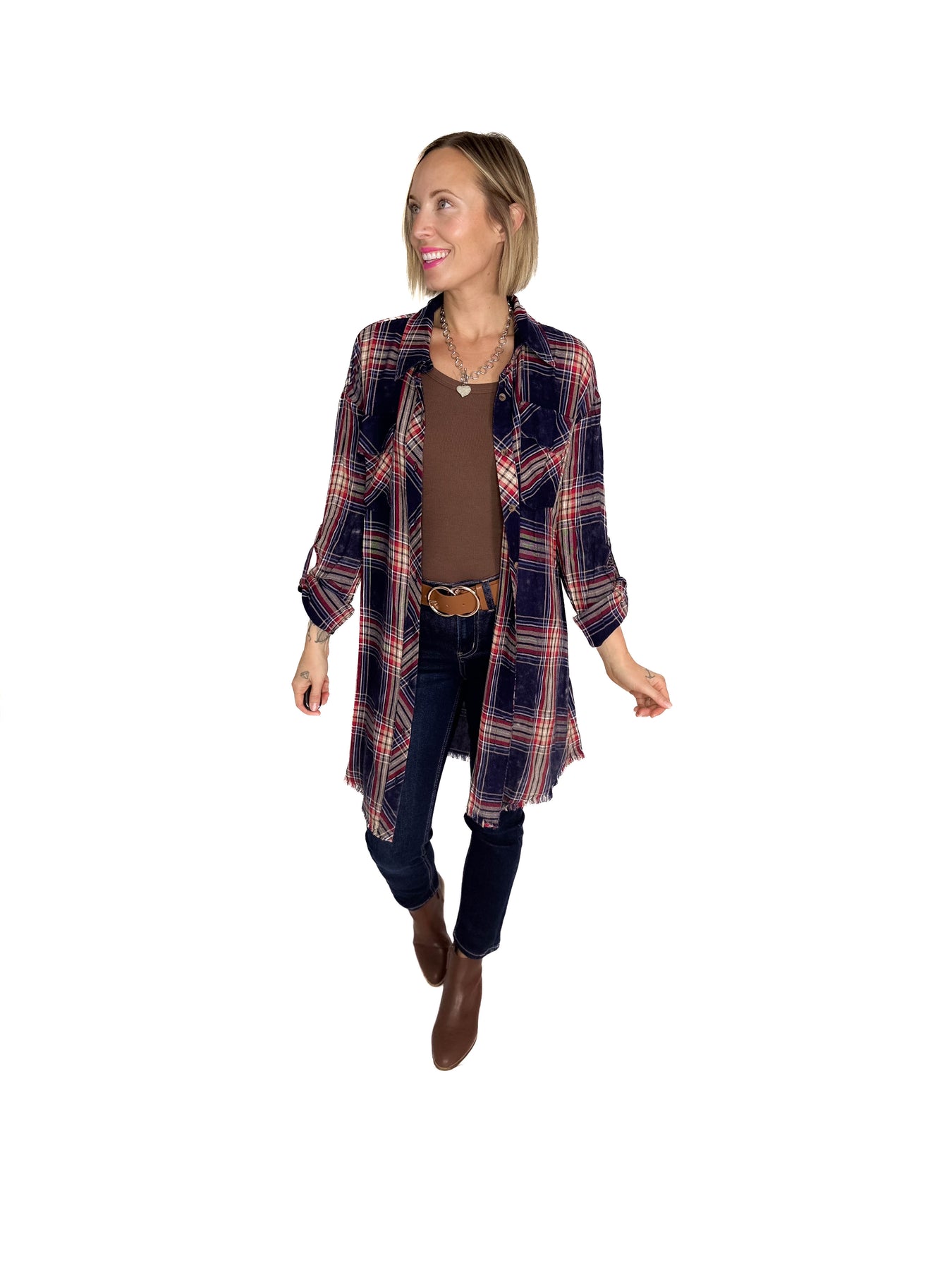 Additional: Flannel, Button-Up Front, Button Cuffs, Frayed Hem, Relaxed Fit