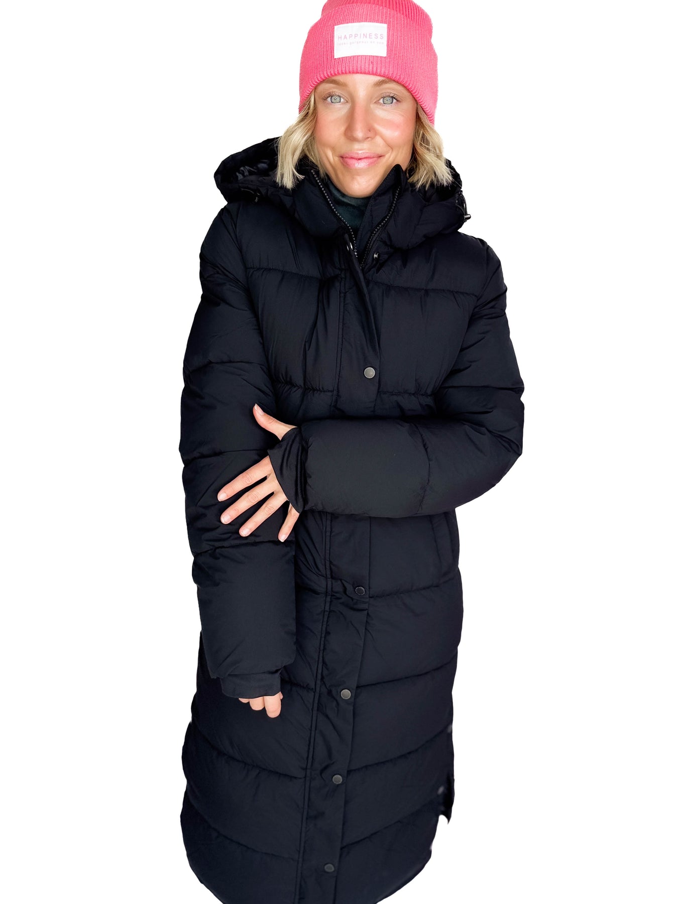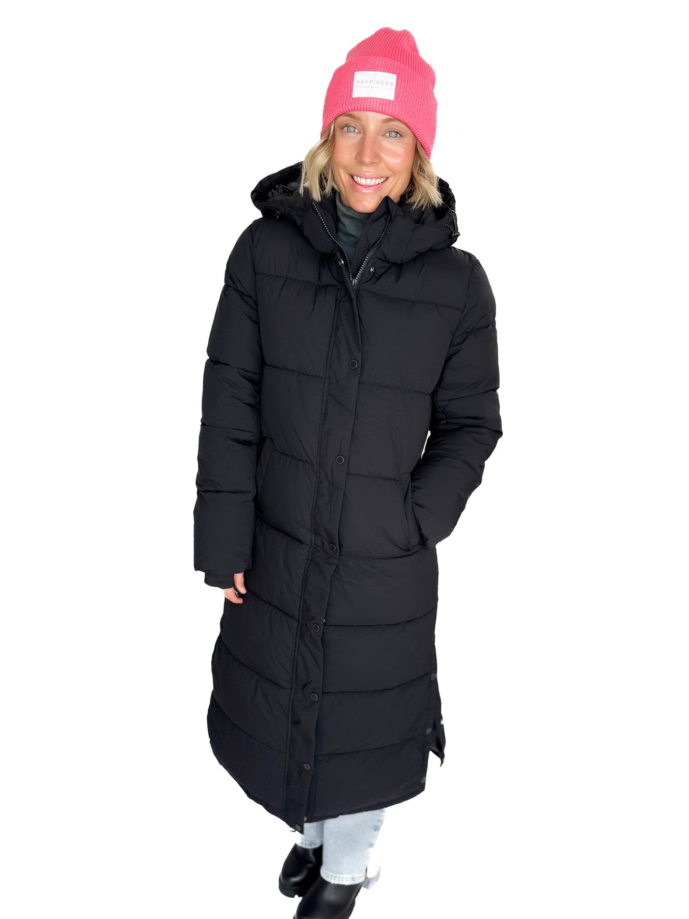 Brave the cold in this long puffer coat, filled with advanced featherless insulation that mimics the warmth and feel of natural down while outperforming it when wet. Complete with a removable hood, cinchable shock cords, storm cuffs, secure zip and snap closures, and pockets for ultimate functionality and comfort. Rated for -30.