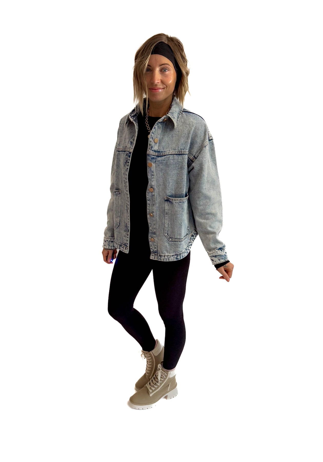 Vintage-wash denim jacket designed for effortless layering with a timeless, structured feel.