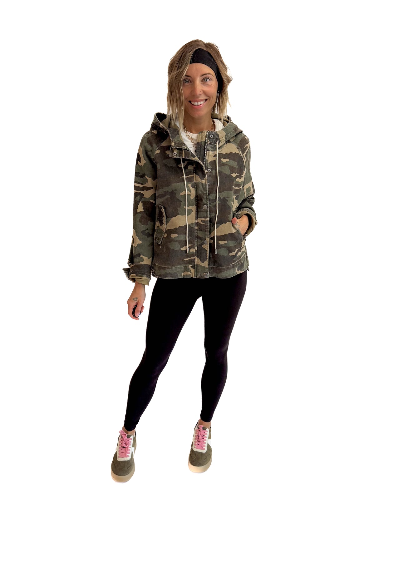 Additional: Hooded camo full-zip sweater with pockets and drawstring