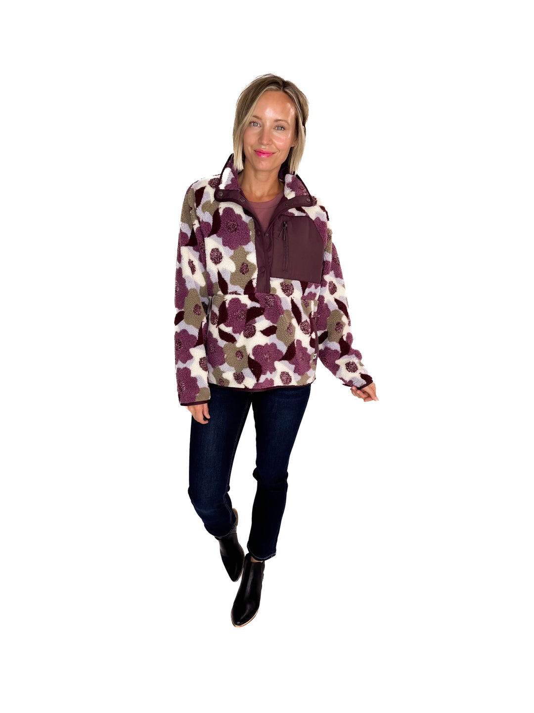 Tara Quarter Snap Sherpa Pullover- SASSAFRAS RETRO FLORAL