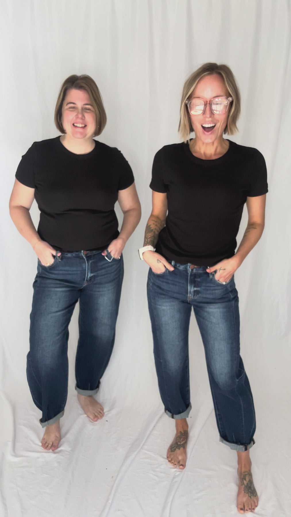 The cuffed barrel jean — relaxed where it counts, structured where it matters. ✨