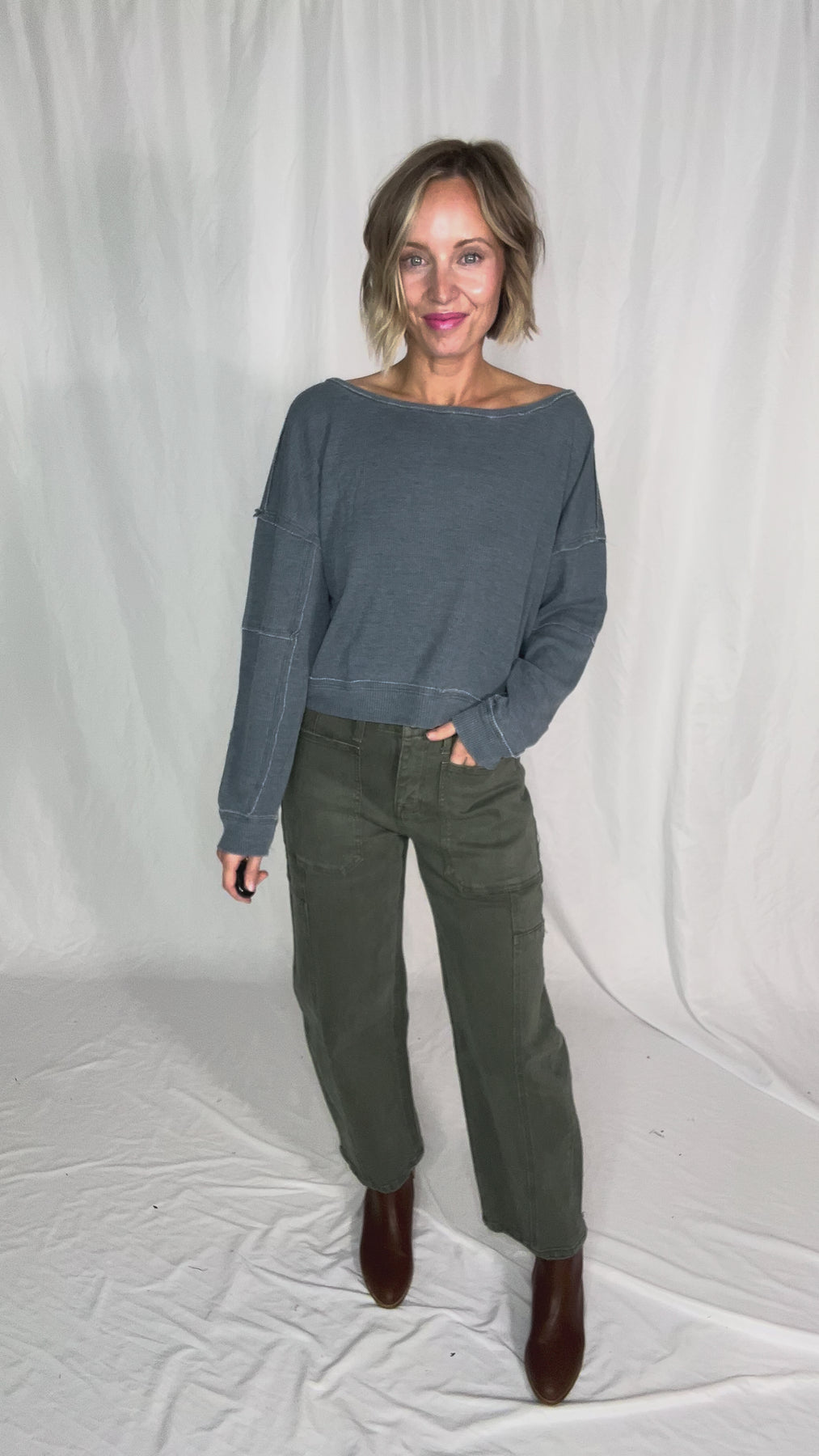 - Effortless boat neck neckline for a laid-back, flattering vibe
