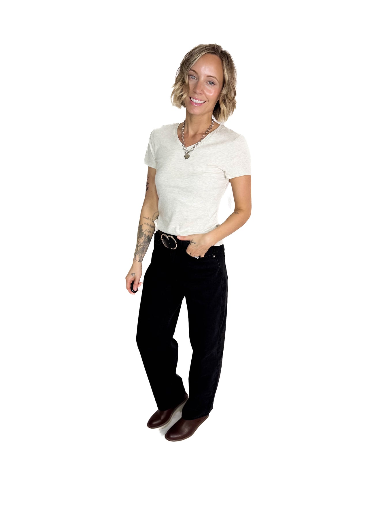 Alder Stretch Cotton V-Neck Tee- OATMEAL