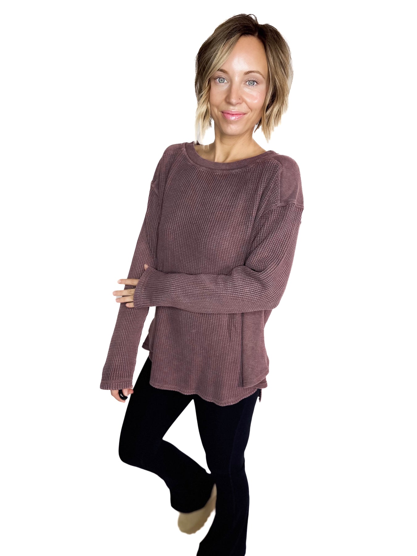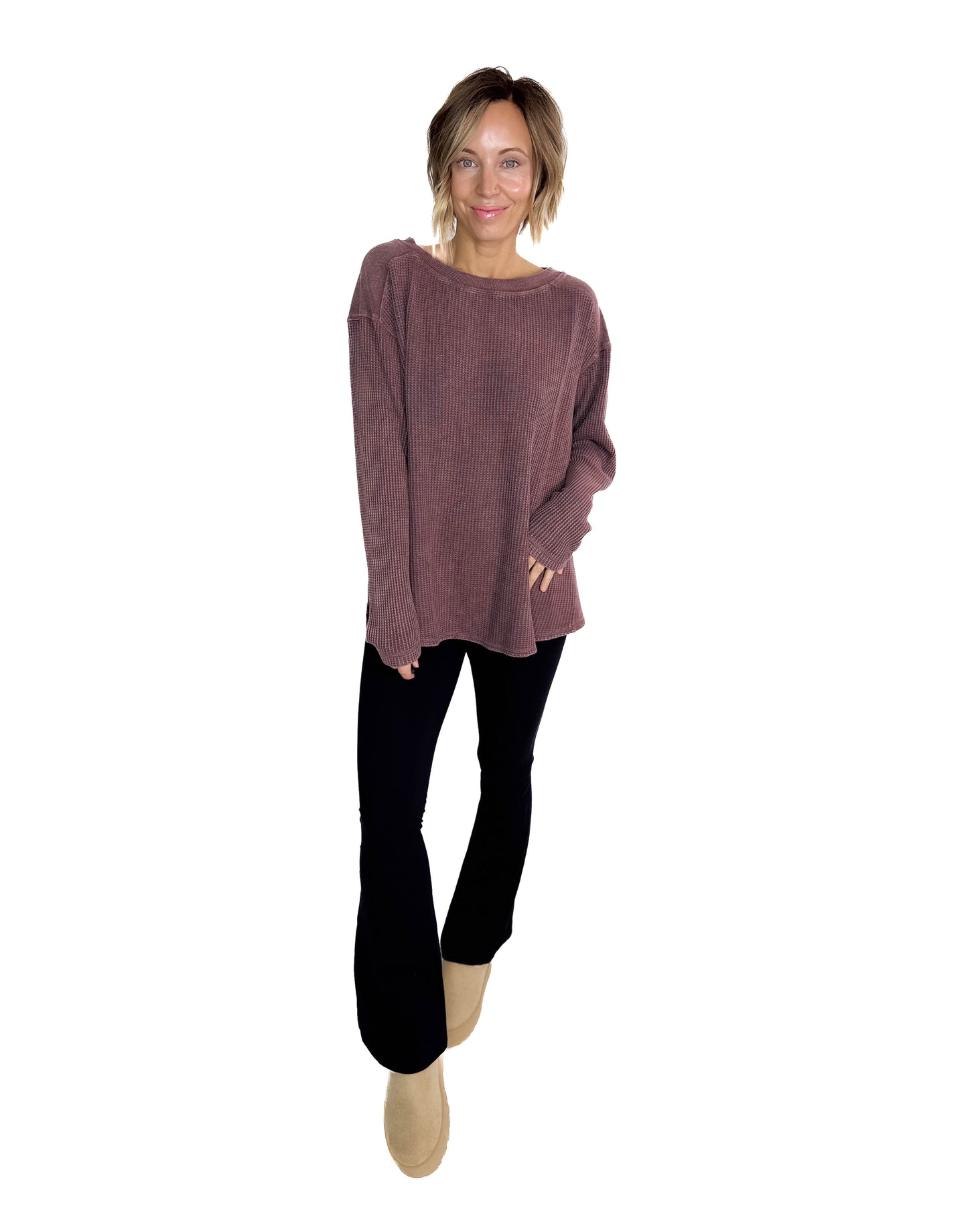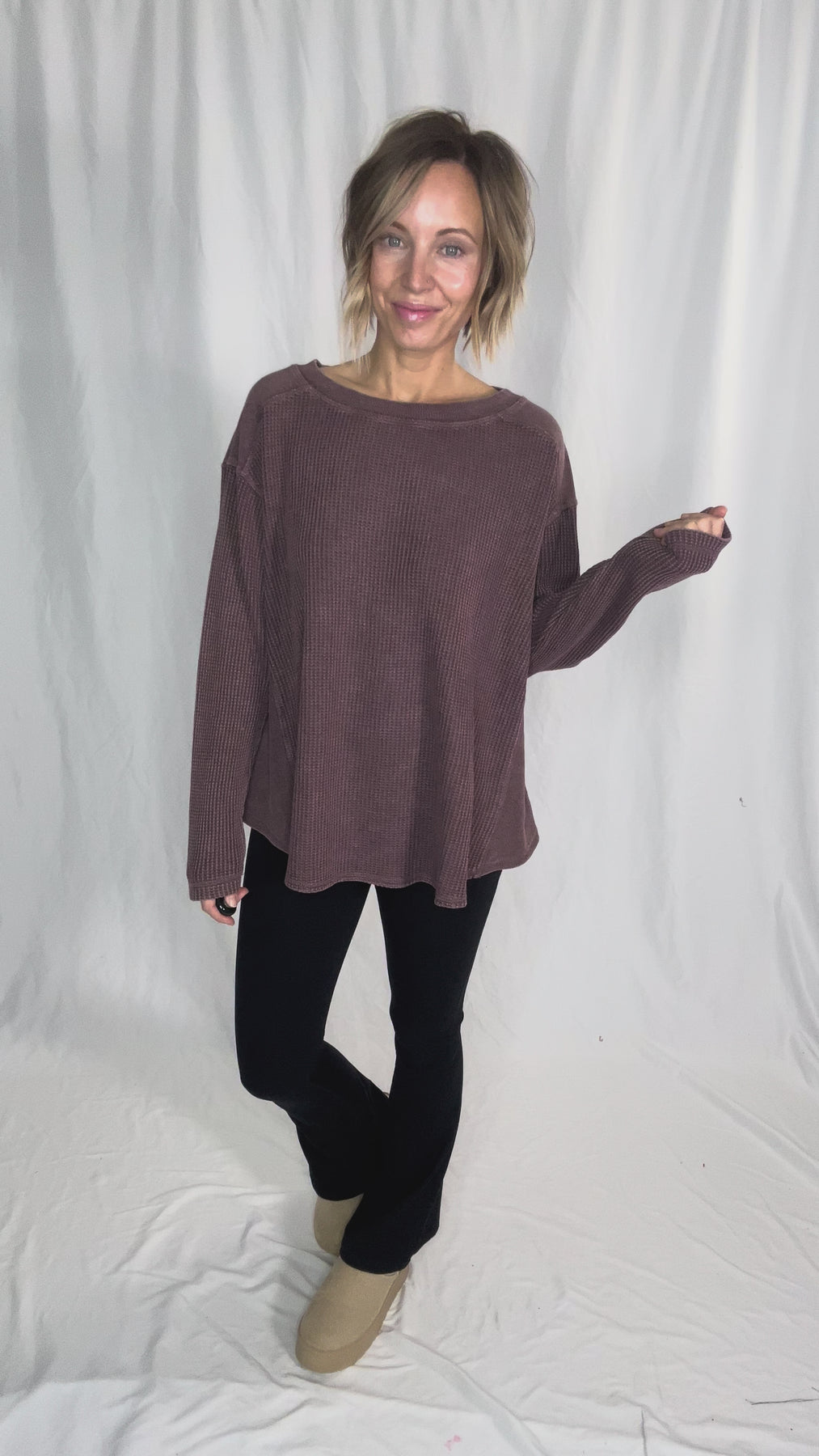 - Cozy textured waffle knit for an effortlessly casual look