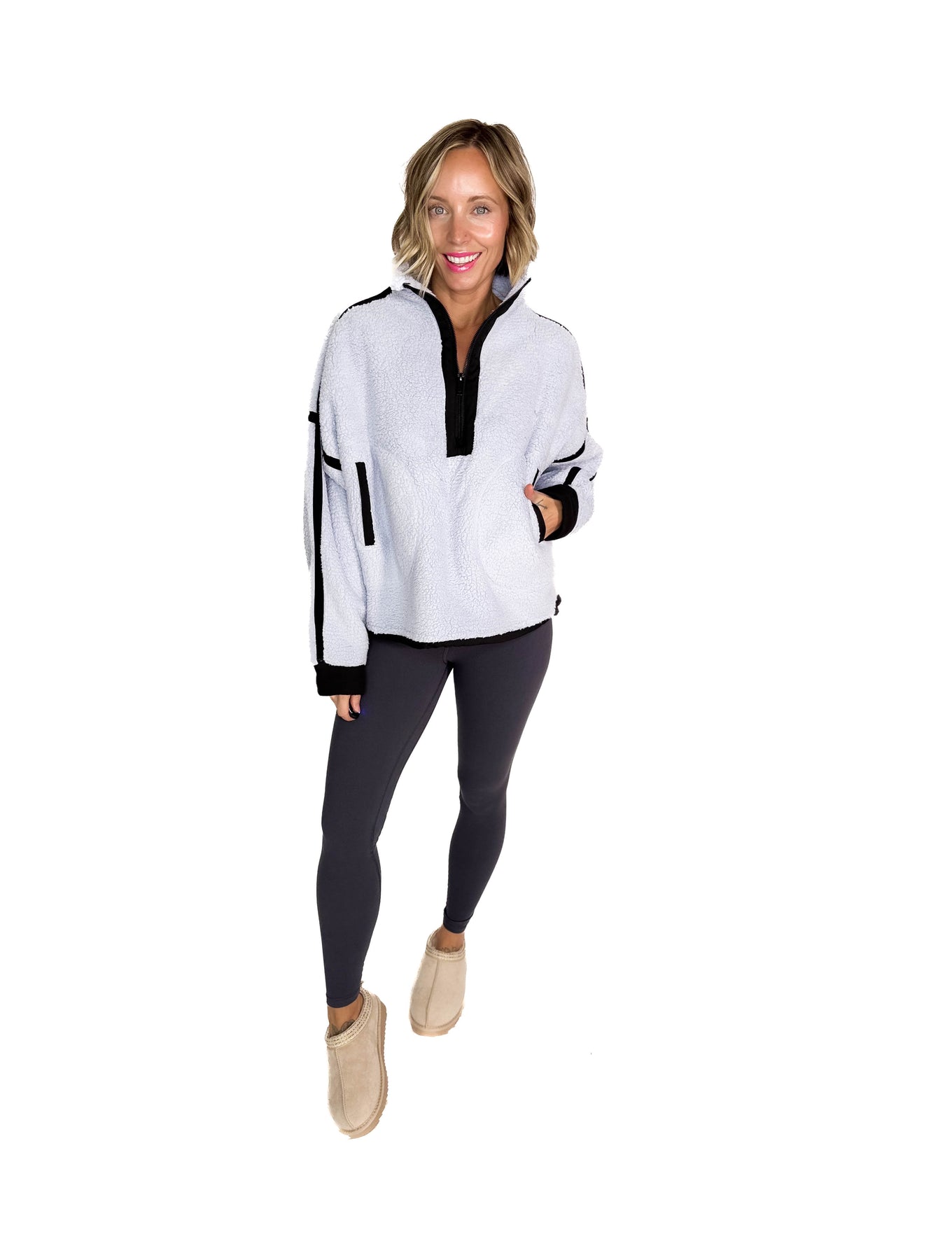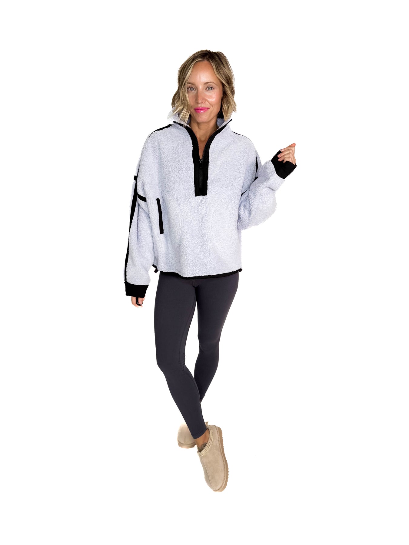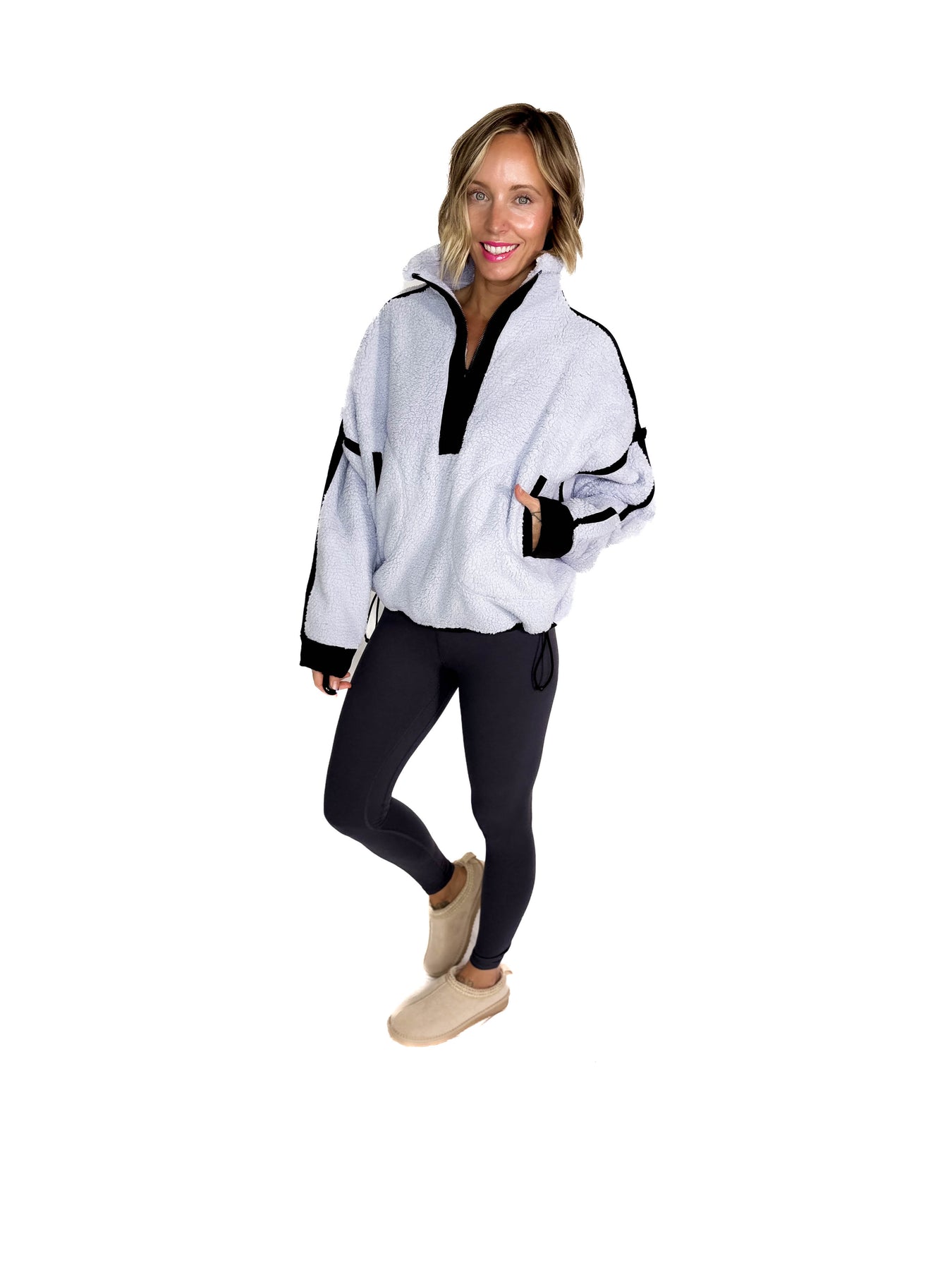 Additional: Half Zip, Sherpa Lined, Front Pockets, Adjustable Cinch Waist, Contrast Details