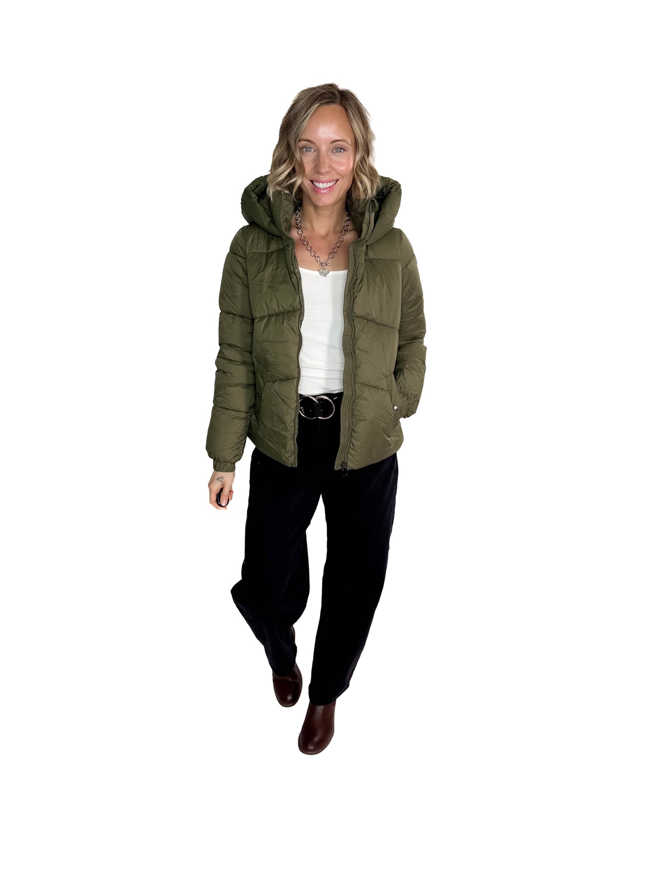 - Classic puffer style with a flattering, slightly cropped silhouette