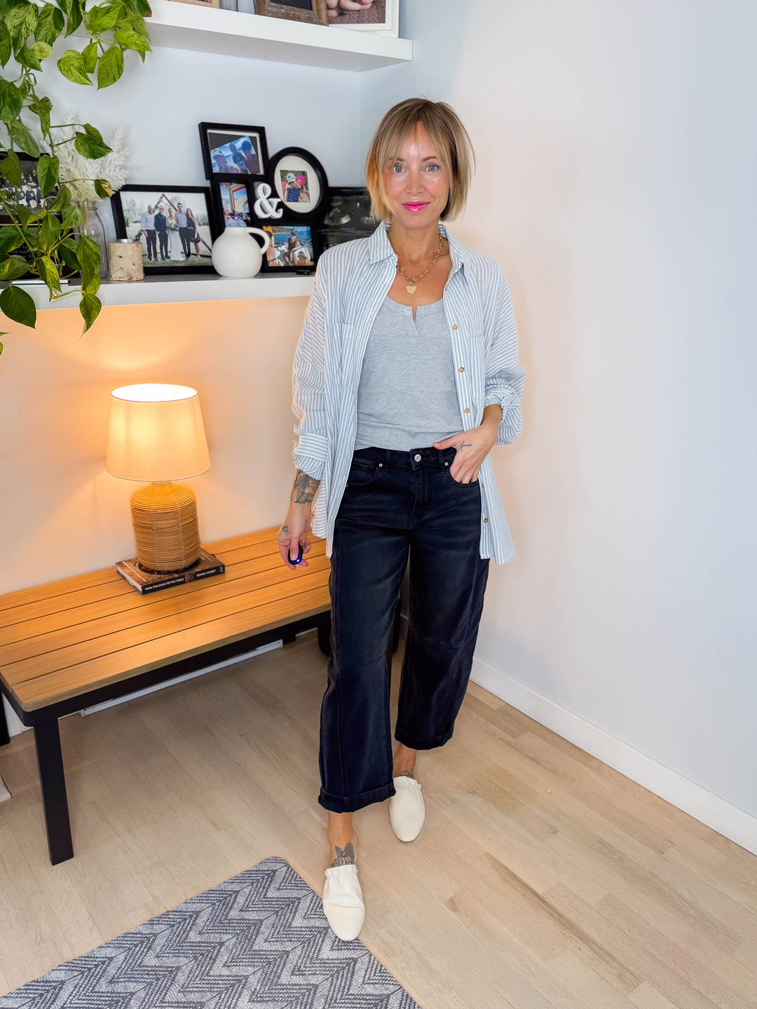 Gia Button Down Long Sleeve- DUSTY BLUE
