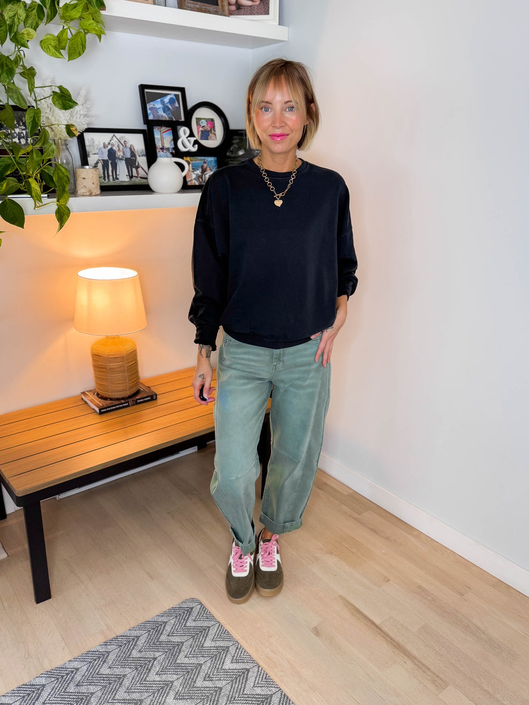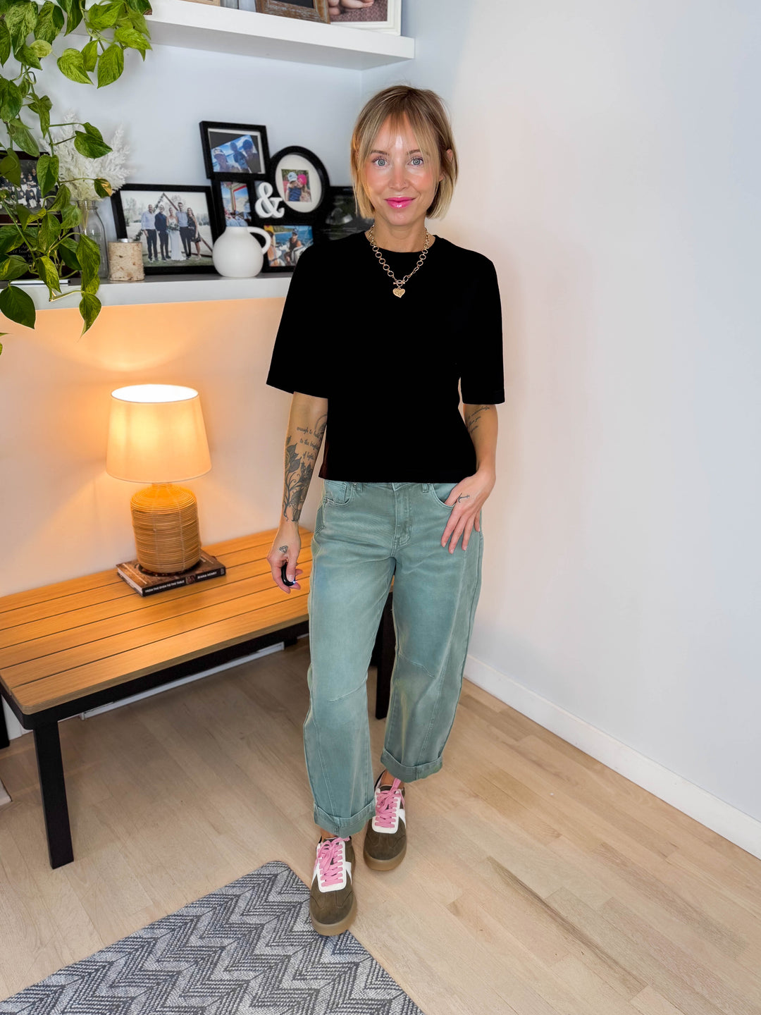 Keri Washed Cotton Boyfriend Tee- SAGE GREEN