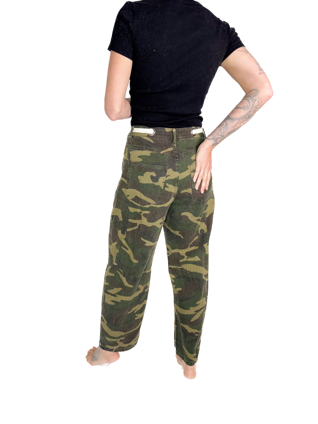 Additional: Camo print, rope string belt, functional pockets, casual everyday pant