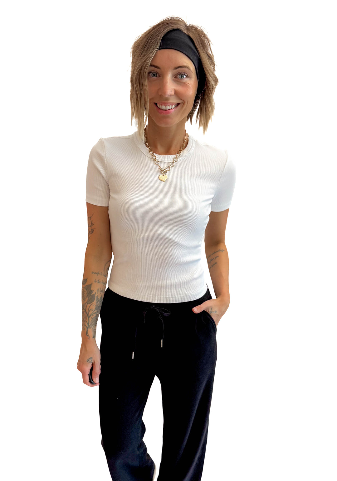 Only Val Cotton Ribbed Tee- BLACK