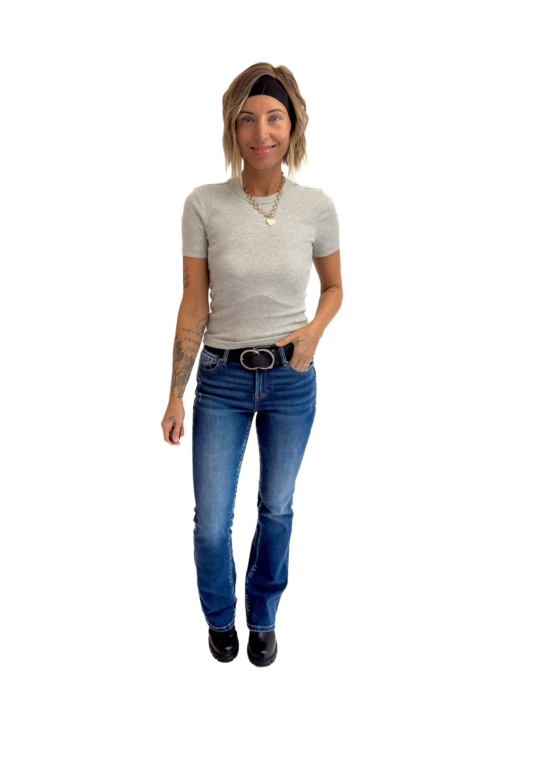 Mica Ria High Rise Bootcut Side Panel Tummy Tuck Jeans- MEDIUM WASH