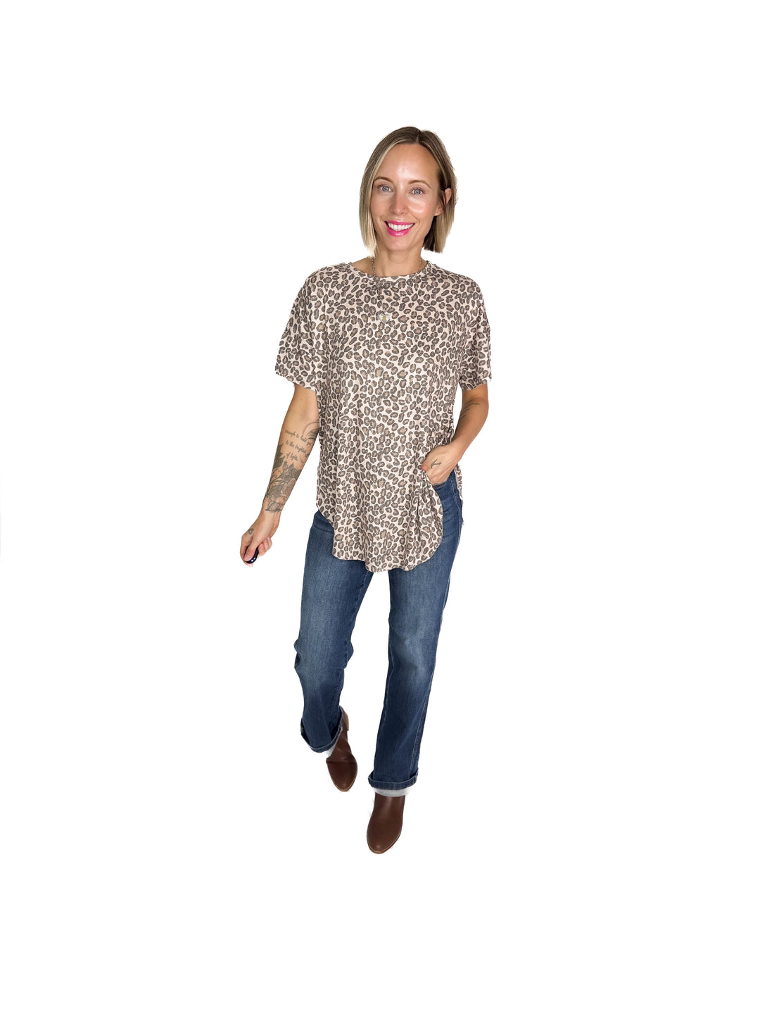 Joey Washed Cotton Boyfriend Tee- CHEETAH