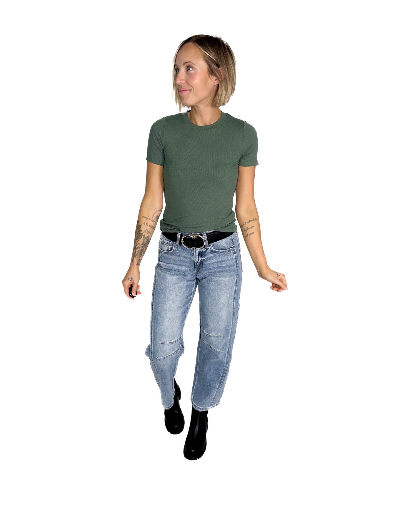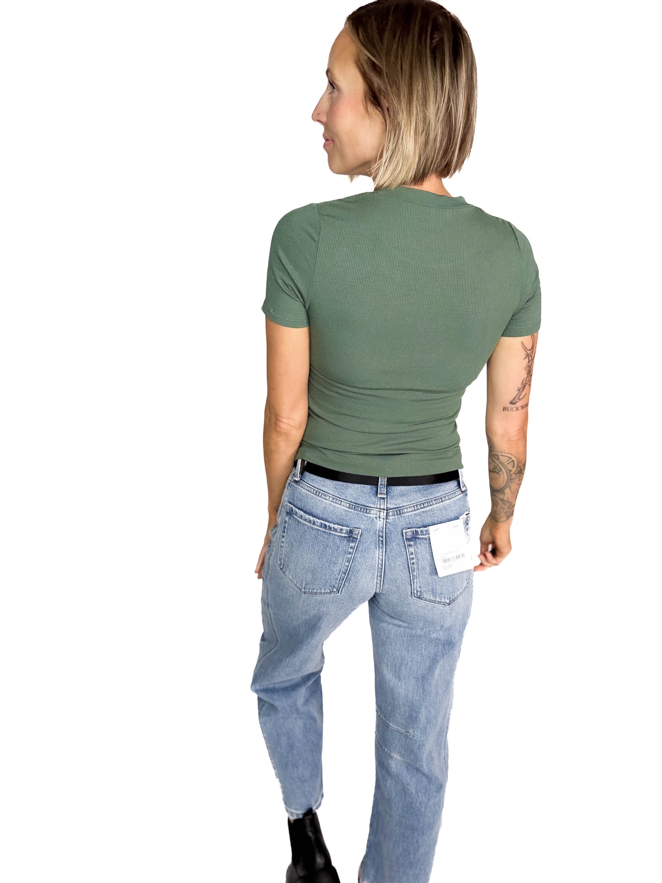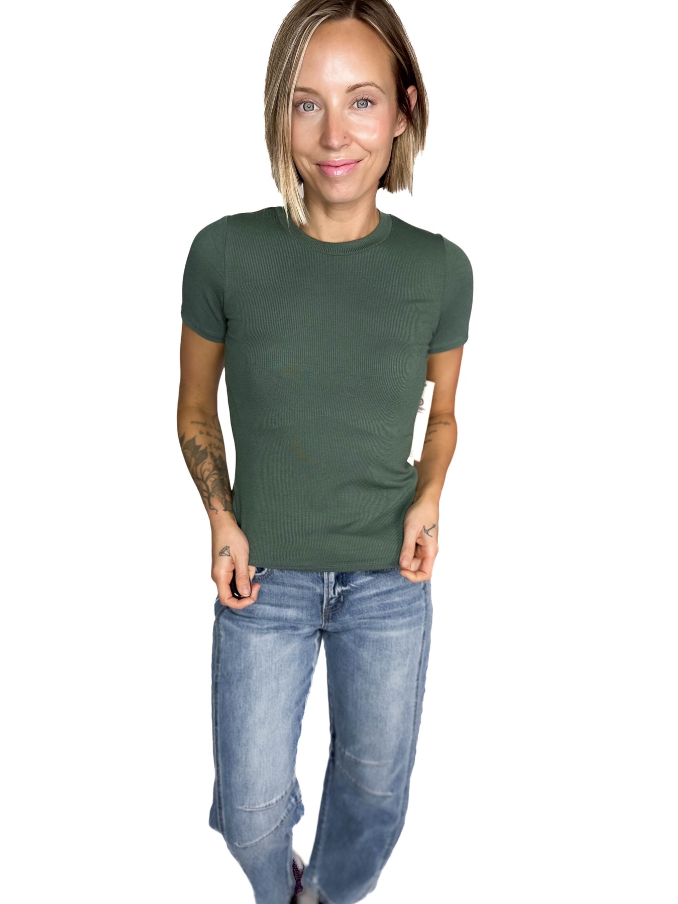 Linley Short Sleeve Micro Ribbed Athleisure Top- SILKY PINE