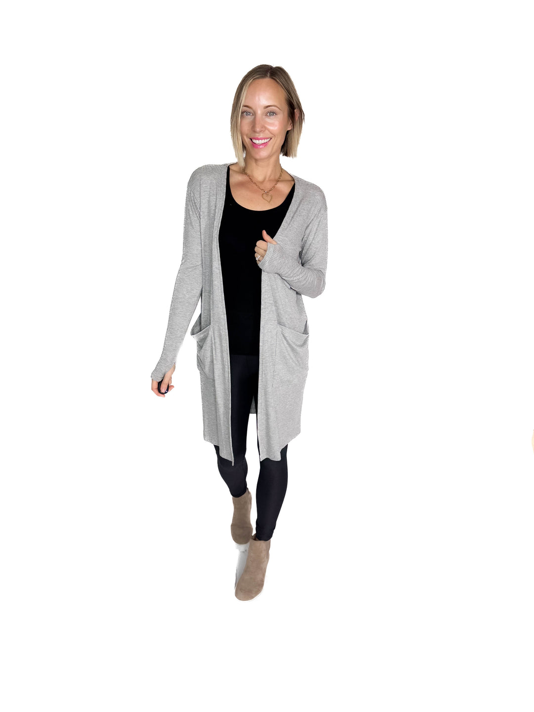 Sierra Ribbed Cardigan- HEATHER GRAY