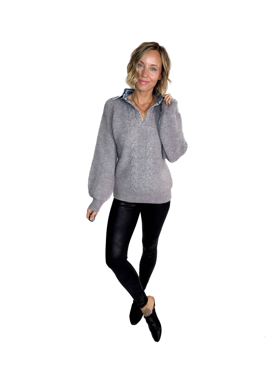 Nina Crew Neck Sweater- HTHR GREY