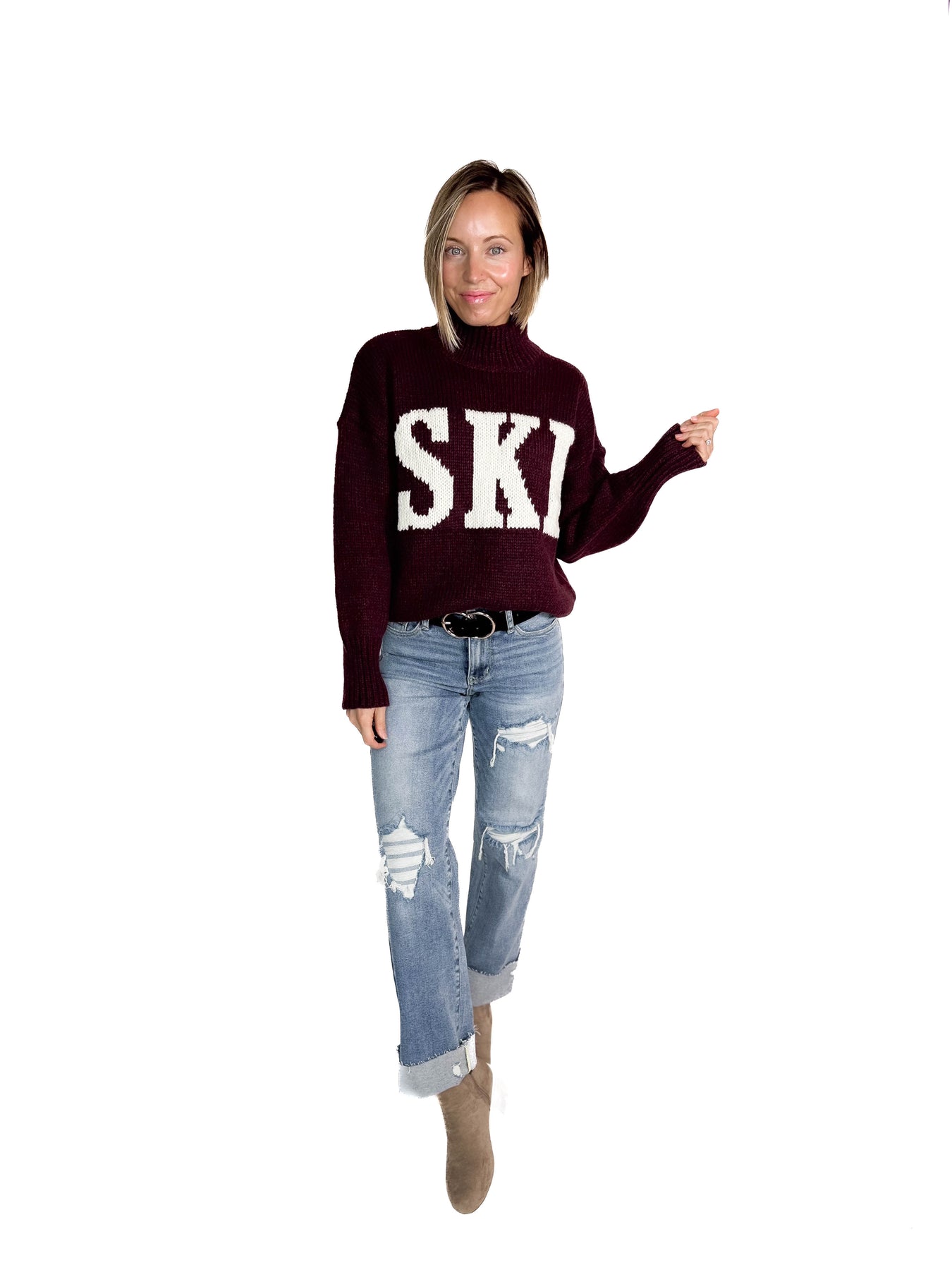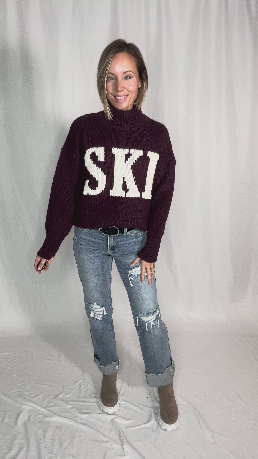 • Bold “SKI” knit design that’s made for cozy winter days ❄️