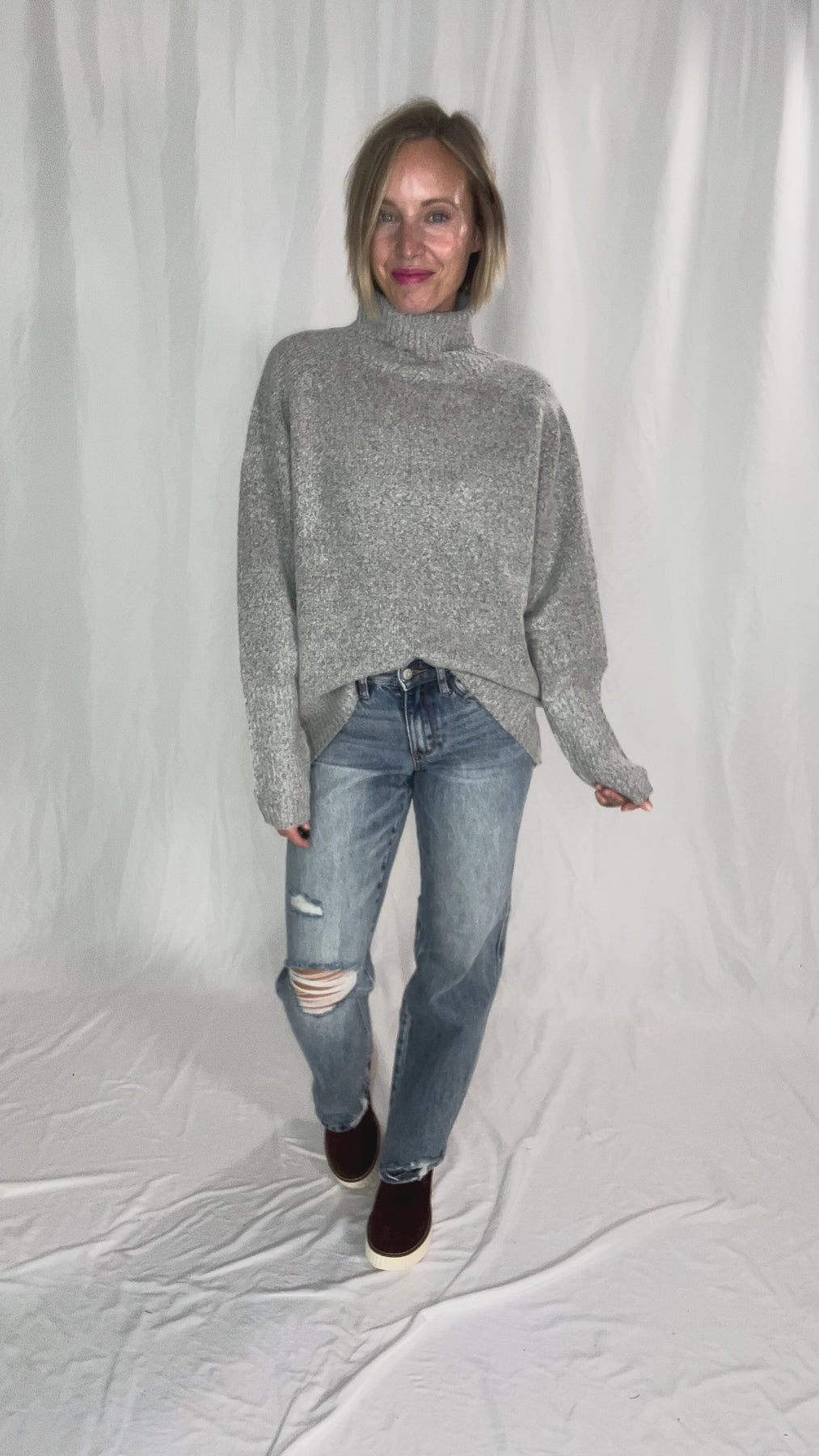Chalet Turtle Neck Sweater- HEATHER GREY