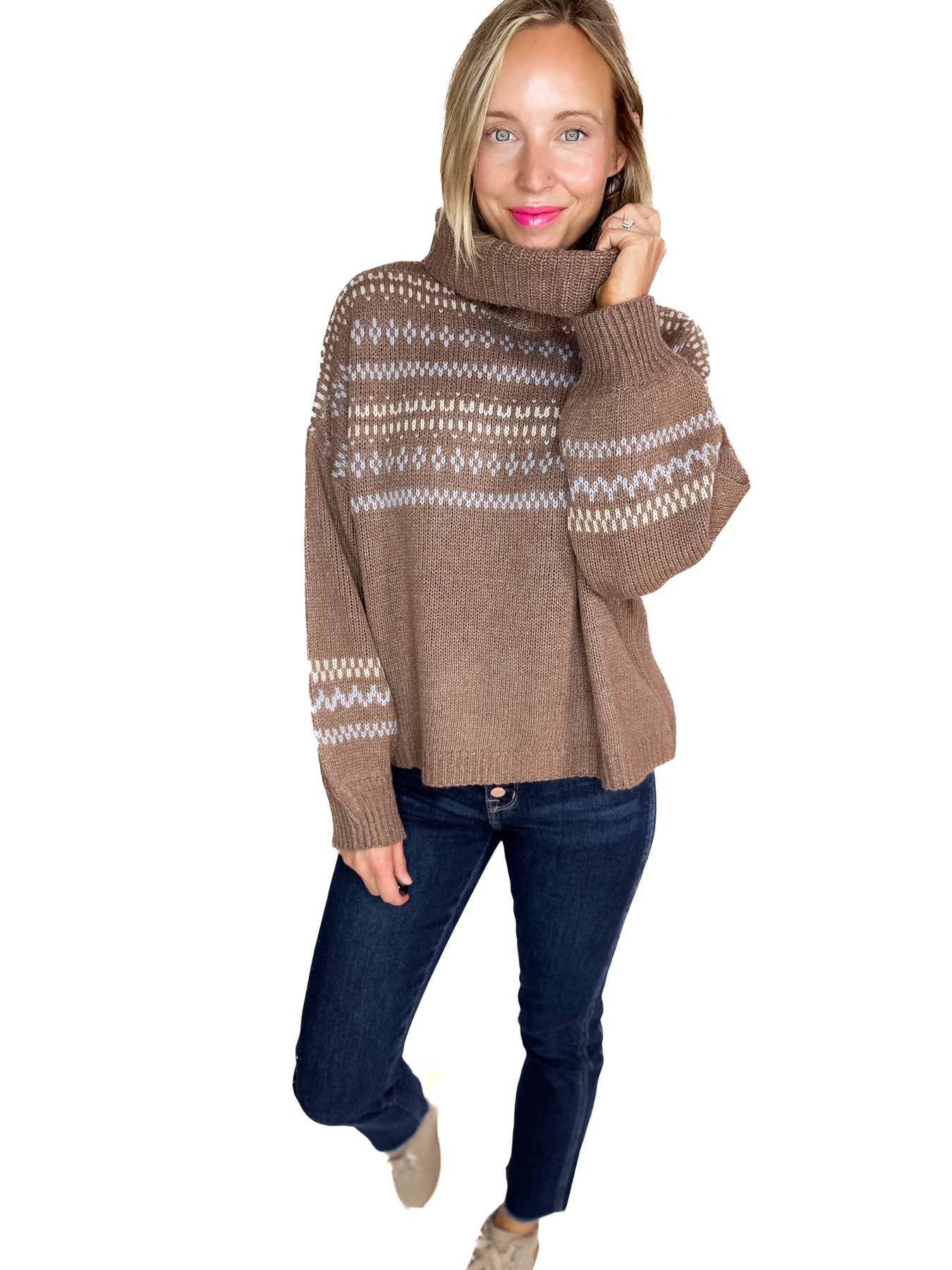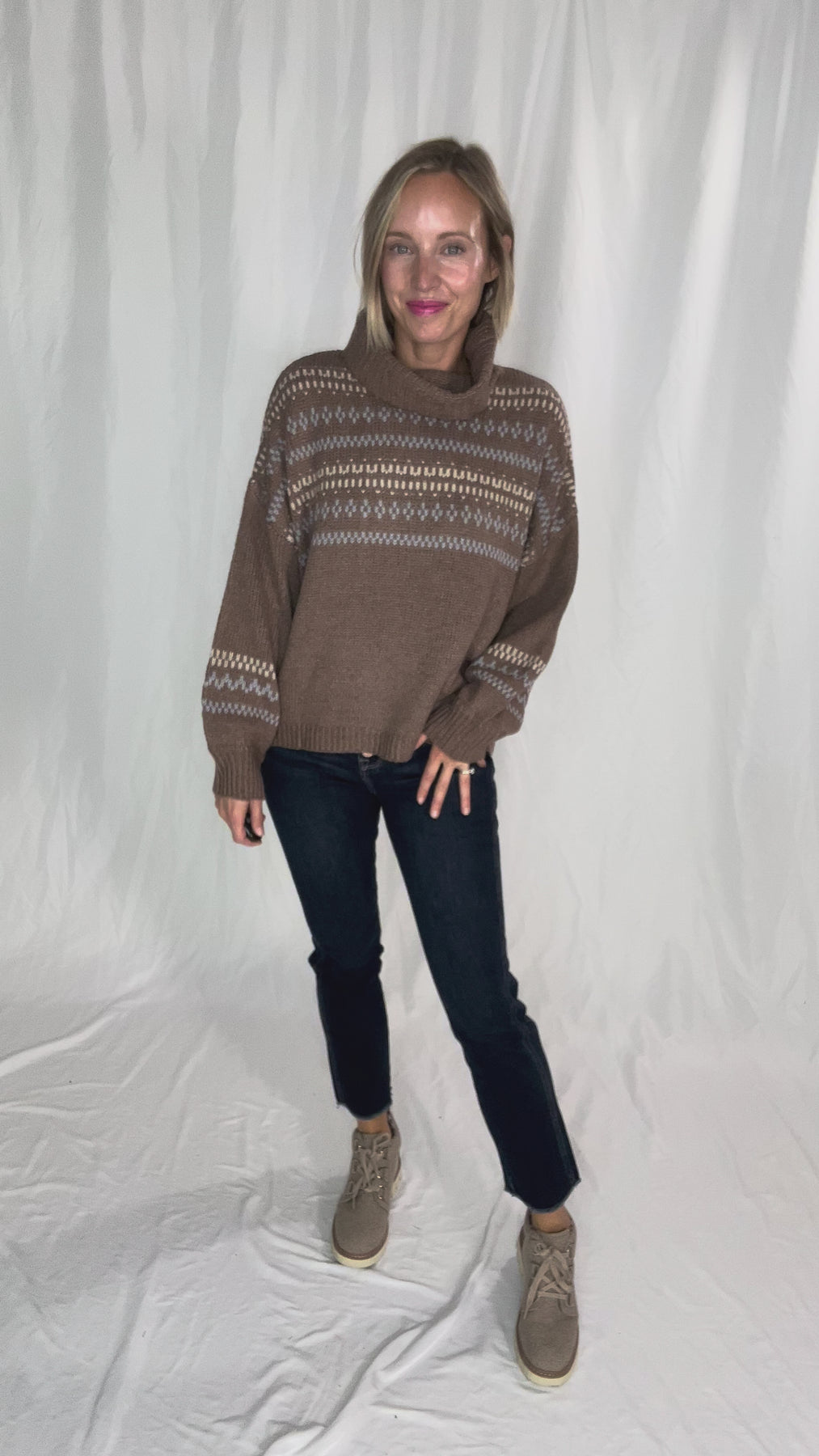 Additional: fold down cowl neck, soft knit