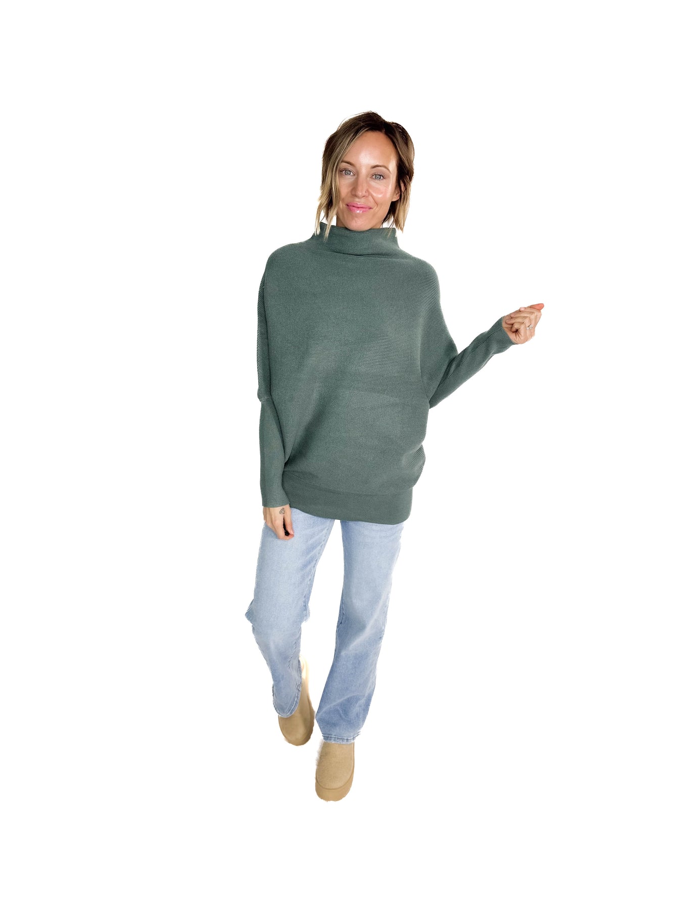 Additional: Ribbed Knit, Dolman Long Sleeves, Mock Neck, Soft Feel